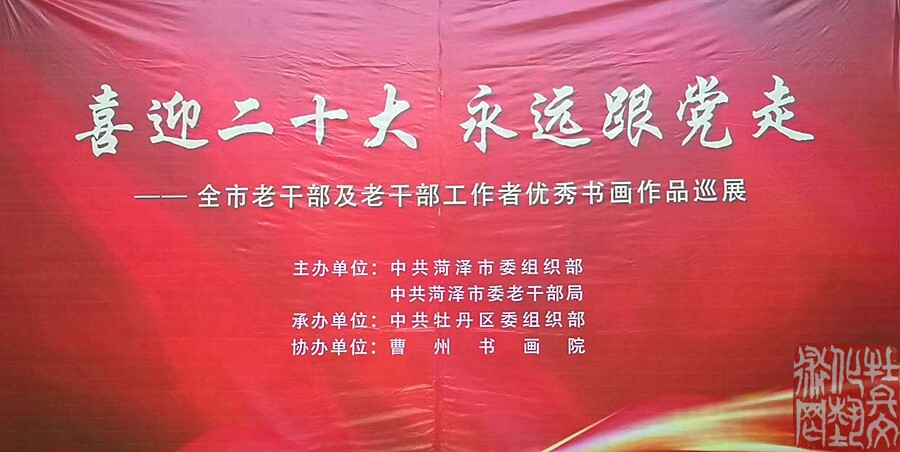 9月30日,由菏泽市委组织部、菏泽市委老干部局主办的喜迎二十大,永远跟党走 全市老干部及老干部工作者优秀书画作品巡展在曹州书画院开幕。广大老干部及老干部工作者积极响应,大家以书言志、以画传情、挥毫泼墨、写意抒情。自8月份征集作品以来,共收到书画作品350幅,经专家组评定,正式入选130余幅。这些作品有境界、有思想、有筋骨、有力量,内涵丰富,形式多样,技艺高超,精彩纷呈,寄托了老干部和老干部工作者对党、对人民、对菏泽的深厚感情,彰显了永远听党话、跟党走的坚定信念,是一份有色彩、有温度、有的二十大献礼。