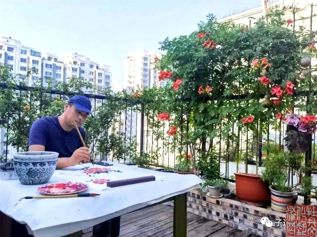 天时人事日相催,冬至阳生春又来。2022年的曹州牡丹园在花开花落中寂寞了一个春秋,对热爱牡丹、热衷写生的艺术家来说,多多少少是一点遗憾。2023年的春天注定是春和景明、春暖花开,让人尽享鸟语花香之乐。菏泽2023“黄河大集”即将在曹州牡丹园隆重开幕,市民文化中心马上启动“好客山东(菏泽)贺年会”文化惠民活动。在这样一个大背景下,菏泽文旅集团将在曹州牡丹园、市民文化中心策划一系列个展、联展、大展和配套的写生、培训、创作、交流活动,每月都有活动,每次都将推出一名或多名艺术家,通过与市场和社会互动,在更多层面、更大范围讲好牡丹故事,擦亮牡丹文化品牌,为菏泽文化事业和文化产业大发展、大繁荣提供源源不断的动力与活力。这也是文旅集团宣传贯彻落实党的二十大精神,践行“百花齐放,百家争鸣”方针和“为人民服务,为社会主义服务”方向的具体行动。艺术家田立,是牡丹园的常客,也是牡丹的知心人、痴心人,他每年、每月甚至每周都来牡丹园与牡丹相伴,在牡丹丛中用心写生,在观花楼上倾情创作,积累了大量素材,创作了很多精品,今天起他为大家带来一场艺术盛宴。