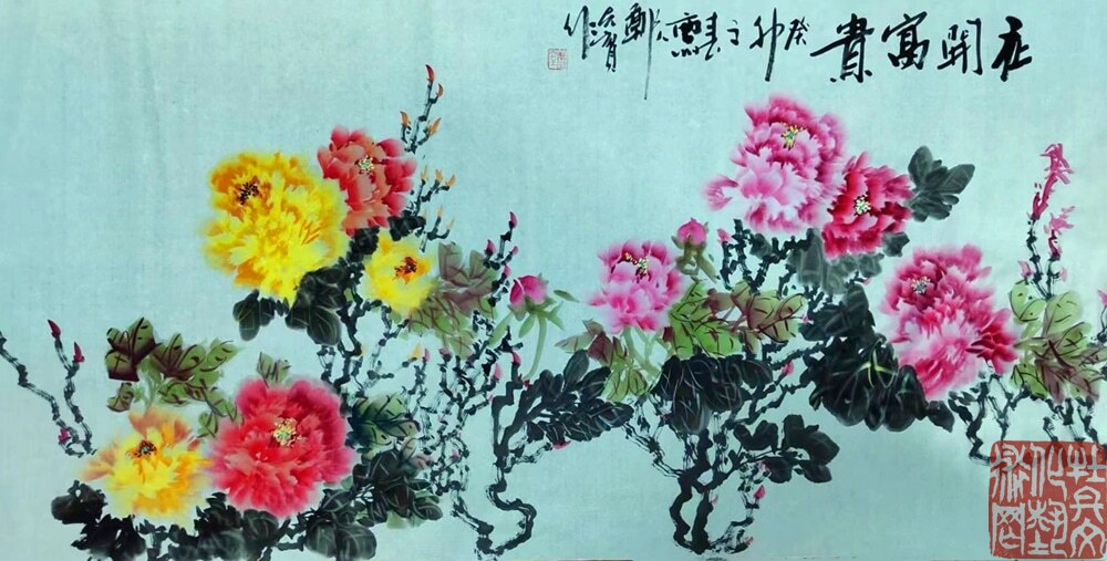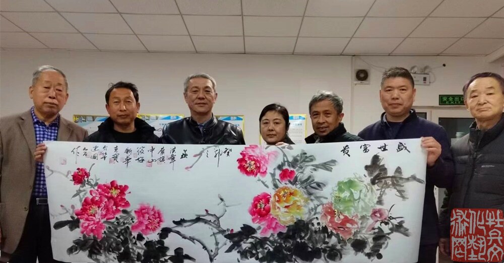 3月18日,全国两会刚结束,为贯彻两会文化精神,菏泽牡丹区翰墨书画院、赵楼书画院(筹)即组织菏泽知名书画家在菏泽黄河路同力工贸宾馆姜允华书画工作室举行盛大书画笔会活动。实力派书画家,菏泽市石兰书画院院长郑克实、书法家协会会员,书画名家艺术网总监刘中山,牡丹美术研究院副院长、翰墨书画院院士、百变牡丹专业画家张洪峰、曹州牡丹书画传统研究院院长,王小古艺术研究员赵广模、知名书画家袁建国、杨新华、姜允华、黄筱梅等专业书画家相聚在一起,参加了专题牡丹书法及绘画交流活动。书画家们利用难得的休息时间,磋商牡丹文化艺术,研究牡丹绘画风格,畅悟牡丹绘画心得,相互交流艺术新思想、新境界,并纷纷挥毫泼墨,10余幅端庄大气、风格迥异的国色天香、姹紫嫣红、繁花似锦、雍容华贵的牡丹绘画及书法作品精彩纷呈。书画笔会交流活动加深了对两会文化精神的深刻理解,增进了书画家们相互取长补短、共同提高进步的友谊。