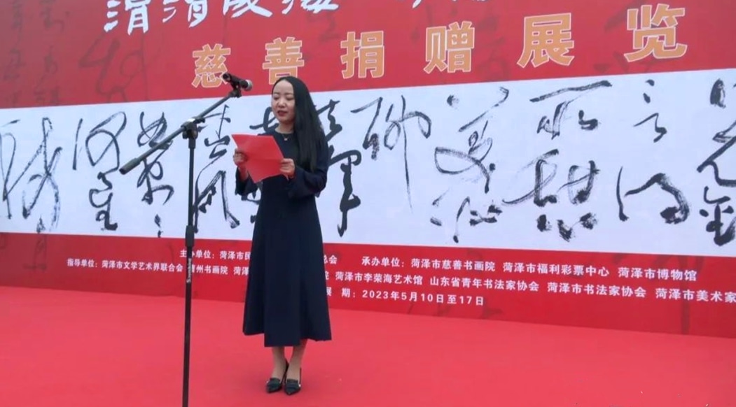副市长张鹏出席开幕仪式并讲话。他指出,菏泽慈善事业的长足进步,凝聚着社会各界的关心支持和无私相助。广大书画艺术家聚在“善”的大旗下,借尺幅天地绽放慈善情怀、以翰墨丹青传播大爱,助力了菏泽慈善事业加快发展。希望各位艺术家们紧紧围绕举旗帜、聚民心、育新人、兴文化、展形象的总体要求,讴歌新时代,弘扬主旋律,创作出更多高质量的慈善书画作品。