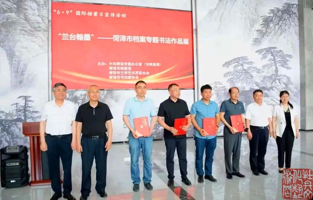6月9日,在第16个国际档案日到来之际,“兰台翰墨”——菏泽市档案专题书法作品展在菏泽市档案馆举办,正式揭开了全市“6·9”国际档案日系列宣传活动的序幕。市委常委、宣传部部长周生宏,市政协副时圣恩,市委原常委、秘书长高木斗,市人大常委会原副主任丁志刚出席,相关市直单位负责人,市书协团全体成员、特邀嘉宾、获奖和入展作者代表参加开幕式。市委副秘书长、办公室主任赵桦主持。
