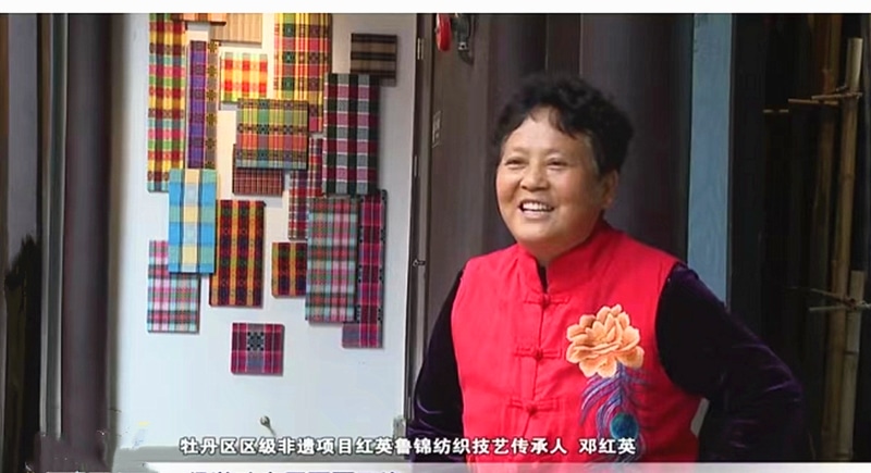据牡丹区区级非遗项目红英鲁锦纺织技艺传承人 邓红英 介绍,鲁锦是山东西南部独有的民间手工纯棉提花织布,即用染色棉线按照设计好的经纬,手工织成带有几何图案的面料。鲁锦图案精致古雅,色彩绚丽,细密耐用,具有浓郁的地方特色和鲜明的民族特色,在国内外享有盛誉。鲁锦织造技艺从采棉纺线到上机织布要经过七十二道工序,正是这些复杂的劳动,使鲁锦具备了珍贵的工艺价值。