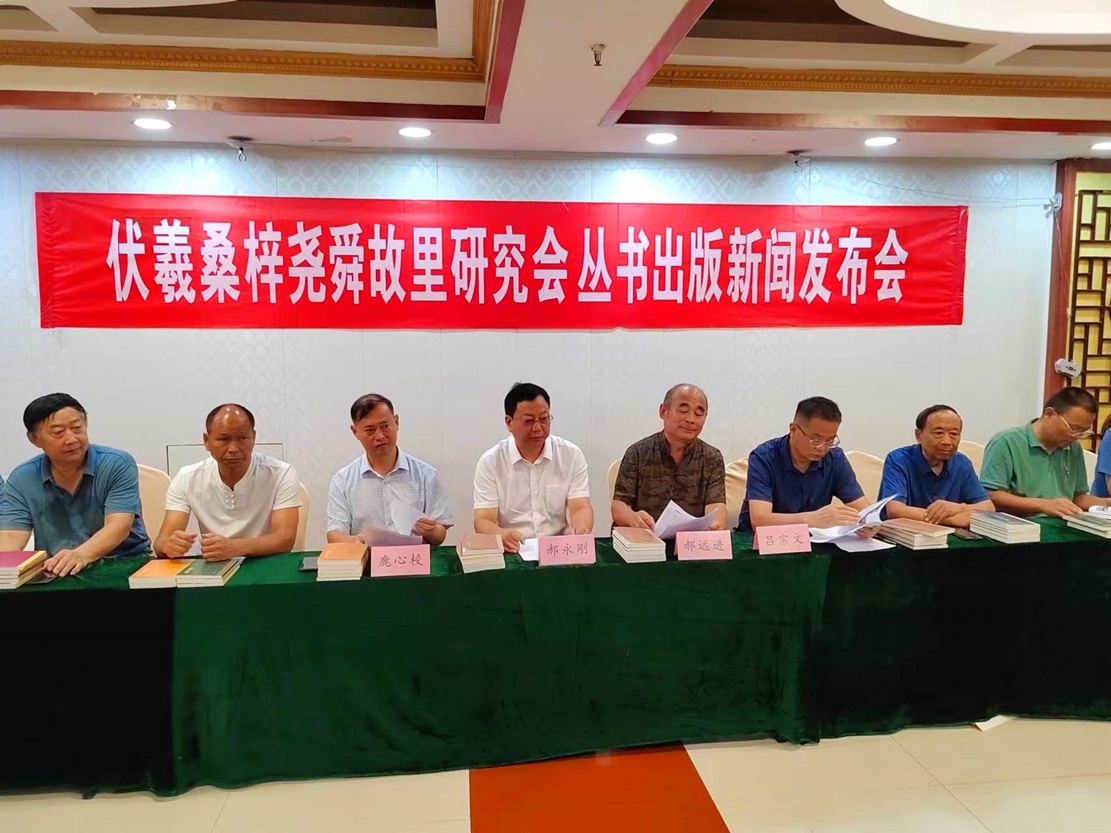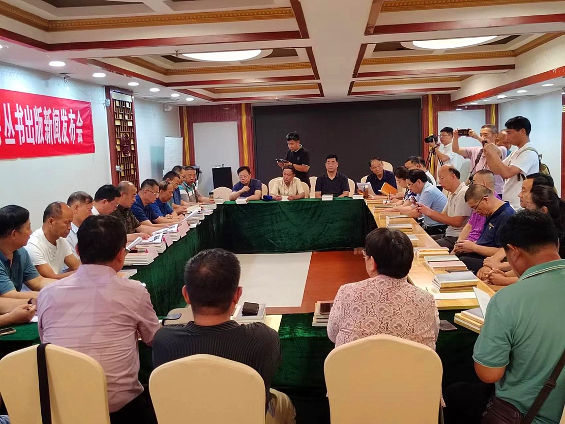 9月3日上午,由潘建荣、张福龙担任总顾问,潘建荣总序,菏泽市牡丹区委书记尹茂林、区长董良峰担任总策划,郝远进担任主编,山东文化音像出版社出版发行的菏泽伏羲桑梓尧舜故里研究丛书《传说时代》《历代尧舜禹诗词》《伏羲与周易》《曹州民俗》《曹州百家姓》一套5卷本出版新闻发布会在牡丹区佳和大酒店举行,市人大常委会原副主任、菏泽历史文化与中华古代文明研究会终身名誉会长潘建荣,牡丹区委原书记张福龙以不同方式给予祝贺,发布会由伏羲桑梓尧舜故里研究会副会长吕宗文主持,牡丹区作协、伏羲桑梓尧舜故里研究会会长郝远进介绍丛书出版发行情况, 牡丹区文化和旅游局、区伏羲尧舜禹遗址管理服务中心、菏泽学院、牡丹区有关部门负责人,兄弟学会负责人,研究会副会长、副秘书长、部分会员及多家新闻媒体等40余人出席了新闻发布会。据了解,这五部丛书从策划构思到资料搜集,从编辑整理到艺术加工,再到审校、出版历时一年多,各方面都付出了艰苦的努力,丛书出版发行显示了牡丹区区委、区的强力支持,显示了牡丹区老一辈专家学者对研究会学术研究工作的大力扶持,显示了社会各界的高度认可与配合,显示了协会昂扬向上的精神状态和积极扎实的文化实力。