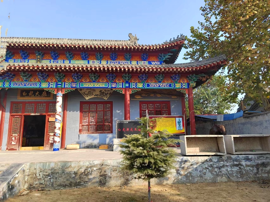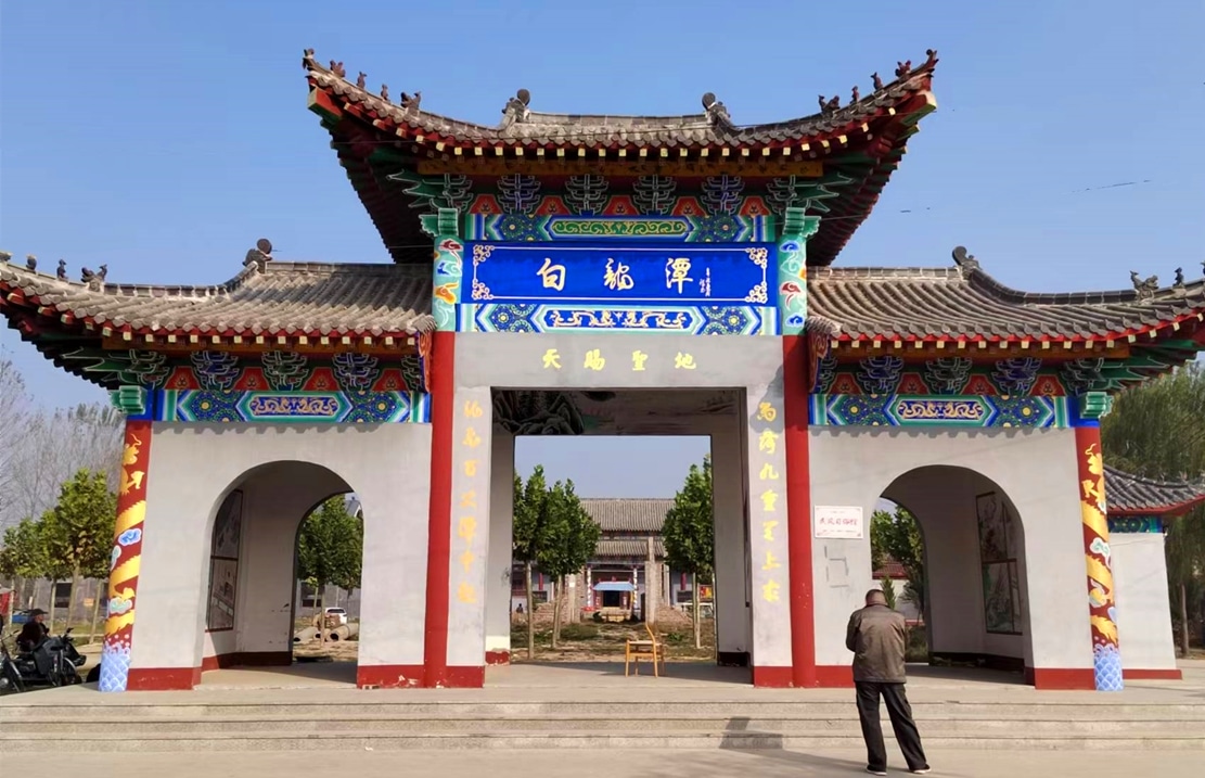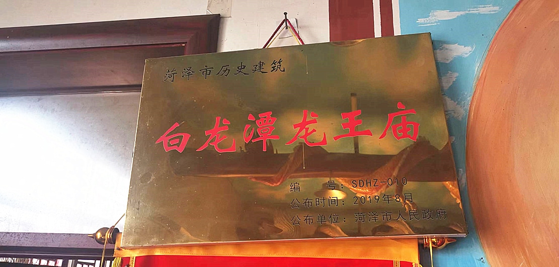 在菏泽城西北二十华里--菏泽吕陵周庄村,有一处占地近30亩、知名方圆数十里的文物保护古迹--白龙潭(白龙池),境内存有白龙母(堂)、龙王殿、龙桑、白龙潭功德碑群等多处可观点。一九九七年菏泽市文物管理部门就划定为保护遗址,村民也将此做为民风习俗馆及商贾交易之地。据史料记载,原来的古寺禅定院初建扵元至元六年,院前有白龙堂,院僧在白龙堂前凿建白龙池。古有的行李寺村形成于唐朝初期,与唐朝李家行军打仗有关,还有传说敬德曾在此饮马等故事,唐朝李家军行军打仗路过于此人渴马乏,见古池有清澈泉水涌出,当时缓解军队官兵及马匹之渴乏,屯兵扎寨。至明朝中期周氏族人携家眷定居于此,繁衍生息后更改村名为周庄村。行李寺及禅定寺均毁于朝代更替之乱。清末民初年间村里老人在白龙堂旧址上盖起一间以示纪念,后经二十世纪八十年代翻修,以龙王庙之称。