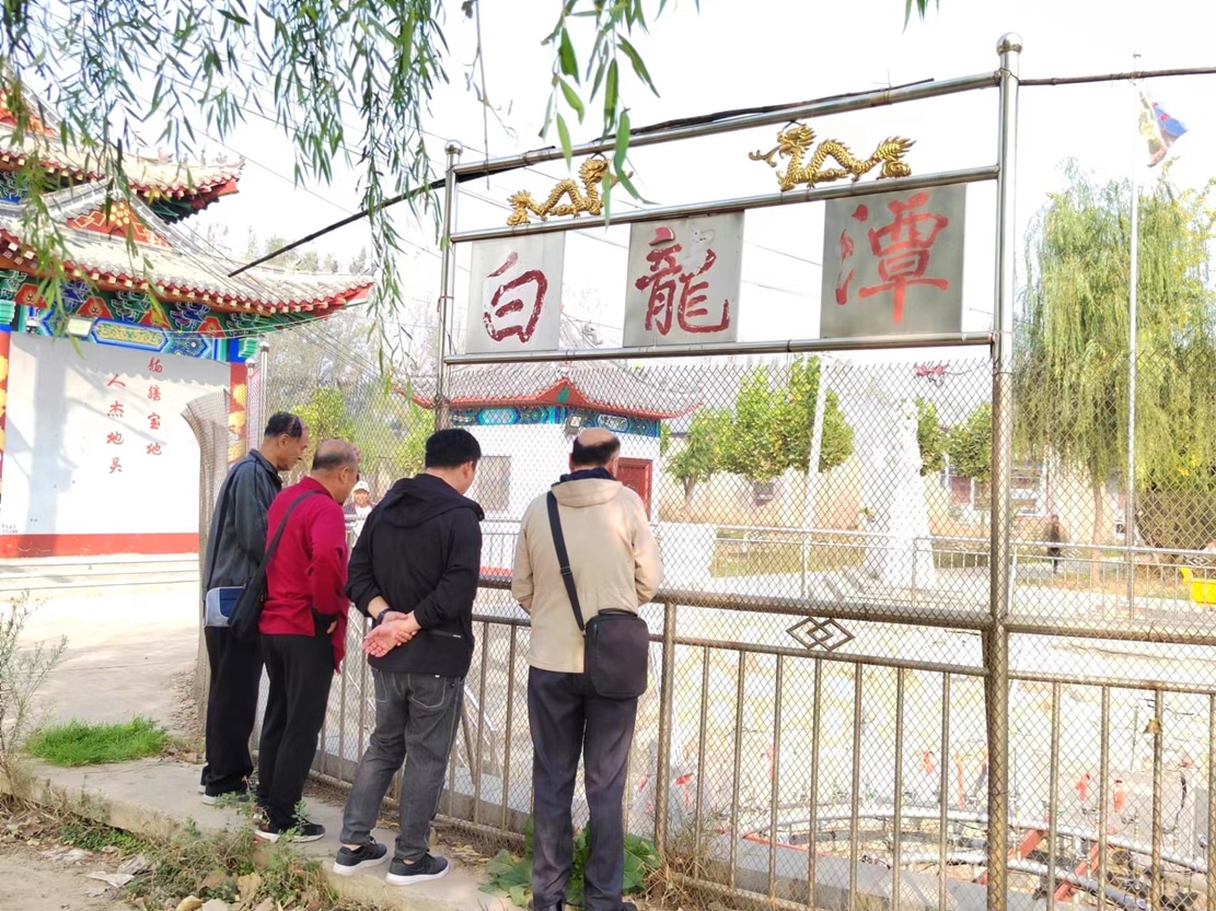 农历九月十五日,为了更好地了解菏泽文物现状和规划及作协开展采风活动,由伏羲桑梓尧舜故里研究会、菏泽市牡丹区作家协会及诗词学会等团队一行8人在会长郝远进带领下,来到白龙潭龙王庙进行考察研究。郝会长就白龙潭(白龙池)现状与过去、古禅定院及古行李寺村进行了解、沟通,并提出良好的建议。