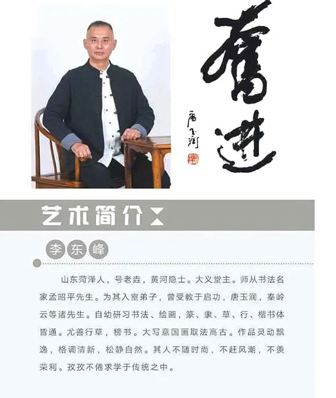 12月9日上午,由菏泽市图书馆、菏泽市书法家协会主办的 “钟情翰墨” 李东峰书画作品展在菏泽市图书馆开幕,六十余幅作品精彩展出。全市文化艺术界二百多人参加了开幕式。本次展览将持续一周时间,12月17日前,广大书画爱好者和市民可免费参观。