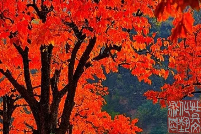 明代,此地多植柿树,大者两人能合围。据载,盛时约4.8万余株。金秋十月,叶经霜染,恰似枫林。满山遍野红果倒挂, 似火焰,如灯笼,在碧空金叶映衬下美景如画。