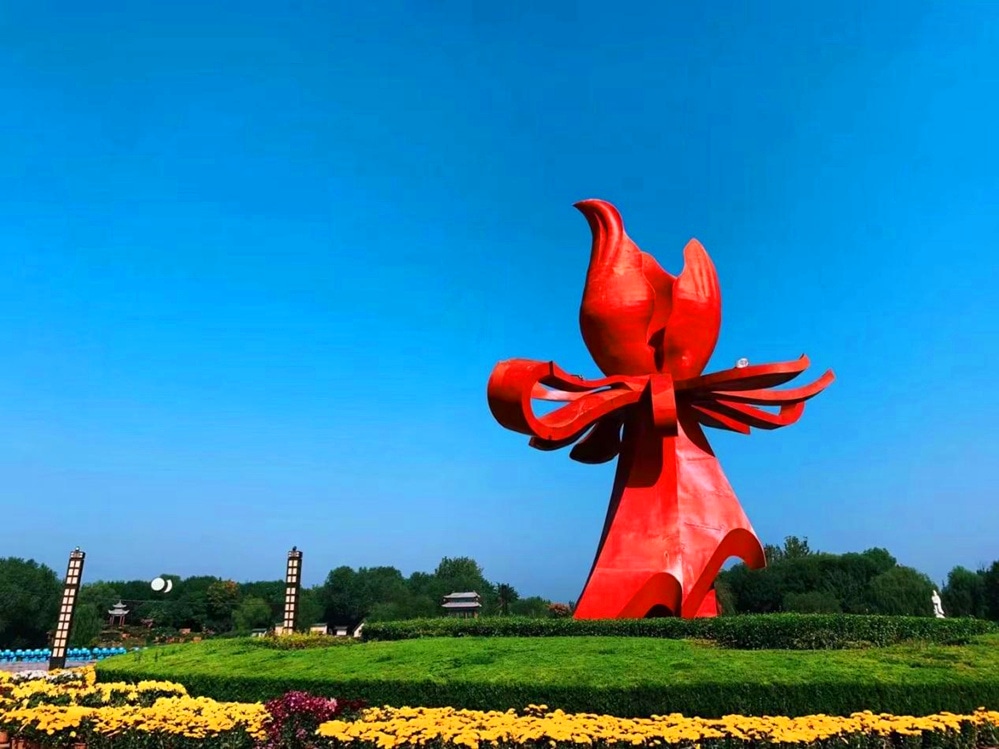 【国花魂】是曹州牡丹园的主体雕塑,它高16米,直径14米,由中央美术学院艺术工程部设计制作,象征着古老而年轻的菏泽,在新世纪更加充满勃勃生机,像国花牡丹一样尽情绽放。