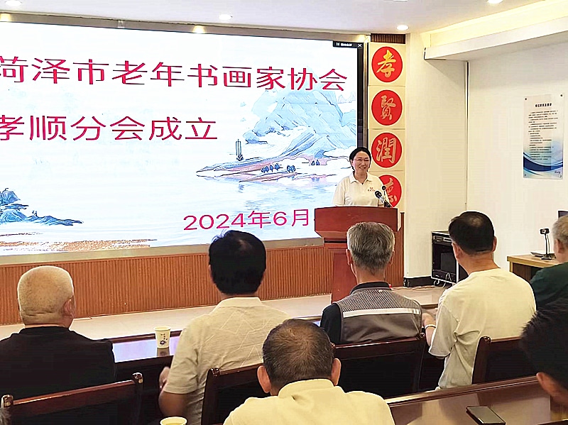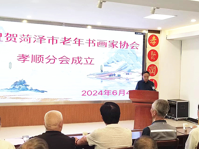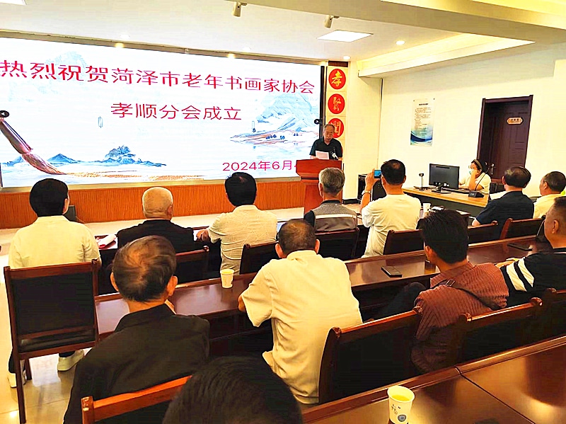 2024年6月4日上午,菏泽市老年书画家协会孝顺分会,在人民路菏泽市孝顺养老示范中心成立。会议由菏泽市老年书画家协会新任命的孝顺分会副会长杨春生同志主持,菏泽市书法家协会副秘书长、办公室主任杨新华同志宣布分会成立并宣读分会领导班子成员名单,菏泽市孝顺养老示范中心院长聂亚丽同志发表热情洋溢的欢迎辞,孝顺分会会长姜允华同志介绍分会筹备情况,并做表态发言,菏泽市老年书画家协会常务副会长李贵钦同志介绍菏泽市老年书画家协会近期及下步工作、并对新成立的孝顺分会提出具体的工作要求。