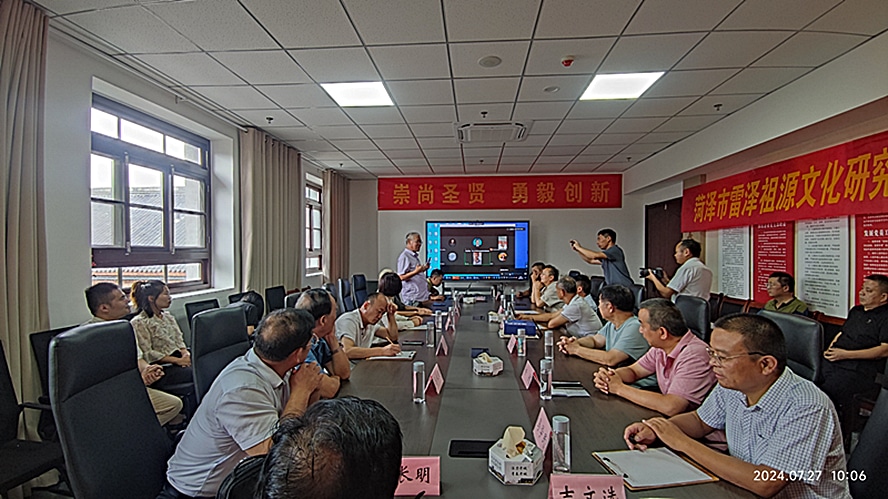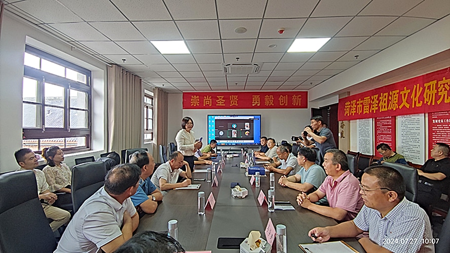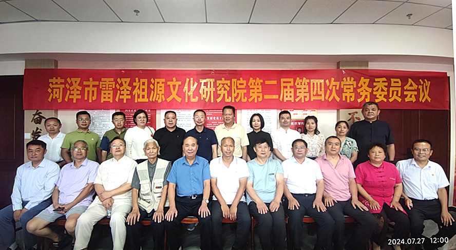甲辰年六月廿二, 2024年7月27日,为进一步 挖掘研究雷泽祖源文化,传承弘扬中华优秀传统文化,尊老爱幼,崇尚圣贤,勇于创新,勇毅前行,团结奋进,共创辉煌,雷泽祖源文化研究院在老城曹州运营中心办公楼三楼会议室举行第二届第四次常务委员会议,雷泽祖源文化研究院全体委员及各姓氏代表等全球祖源文化爱好者、志愿者40余人参加了会议。海内外祖源文化联谊通过网络视频连接。