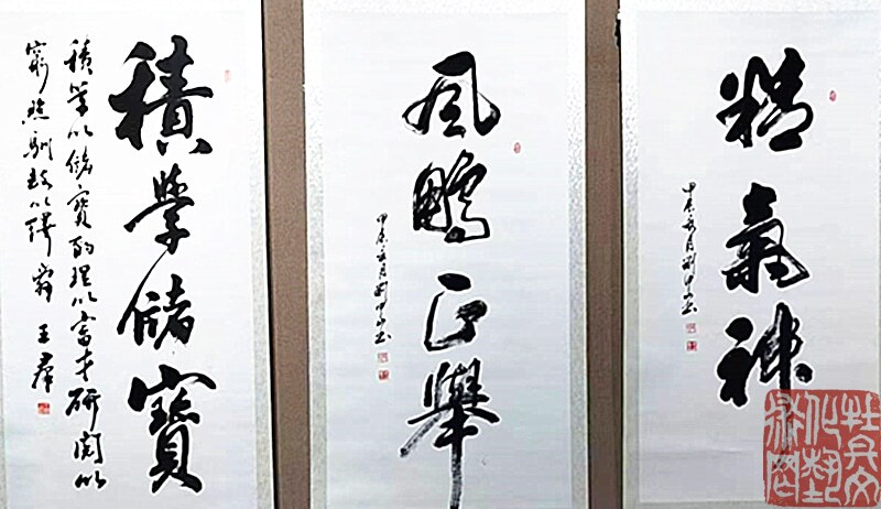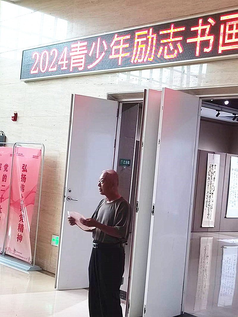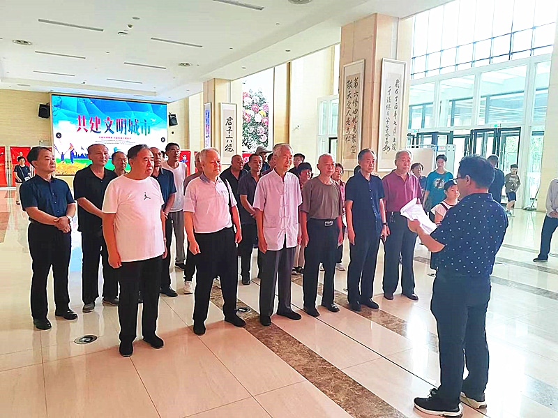 菏泽市老年书画家协会王庄分会会长杨朝忠汇报分会工作开展及展览筹备情况,菏泽市老年书画家协会秘书长荣思成、菏泽市统计局原局长、市老年书画家协会常务副会长李贵钦、菏泽市关工委副主任张荣海 等莅临祝贺并明晰展览的目的意义和下步工作要求。