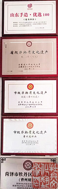 9月25日,牡丹文化艺术网负责人随金融书法家协会会员、甲骨文书法艺术研究会理事、菏泽民盟书画院院长孙向东先生,书画家协会会员、山东省书画研究会理事、菏泽市美协会员、 花都书画研究会理事、原菏泽美术厂元老级彩蛋画家张振亚先生,来到牡丹区吴店镇鹁鸽堂村马宪荣刻瓷艺术馆和刘寨集骨雕牡丹厂探访,两企业主导产品做为 山东省省级和牡丹区区级非物质文化遗产,对菏泽非遗文化的传承和发展发挥了重要作用。