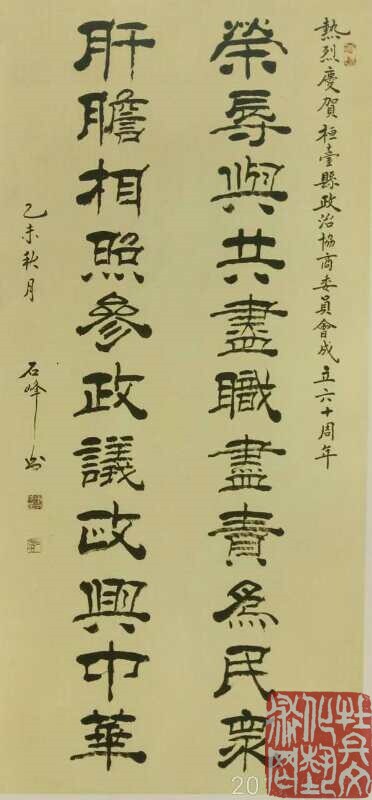 石峰(笔名),本名田孝华,1962年出生于山东省淄博市,现为书画家协会理事,炎黄文化艺术研究会理事,山东书协会员。毕业于书画函授大学,师从刘炳森、庐中南等老师主学隶书、楷书,勤习欧阳询、禇遂良、赵孟頫等碑帖,多次參加全国书法大赛并获奖。