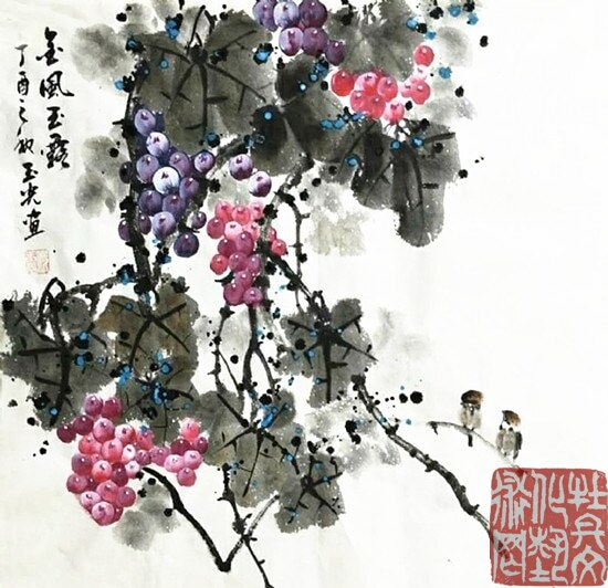 戚玉光,山东临沂人,1962年3月出生,自幼喜欢绘画,善攻山水花鸟,尤其葡萄为擅长,师从北京韩葡萄韩宗华。韩宗华老师对画葡萄另辟蹊经,画面活灵活现,晶莹剔透,开创国画葡萄画法新格局。后又在郝兴起画家国画高研班学习主攻山水画。作品多次参加国内外画展并获奖。 现为:全国名人书画艺术界联合会委员,教育电视台《水墨丹青栏目组》水墨丹青书画院会员。
