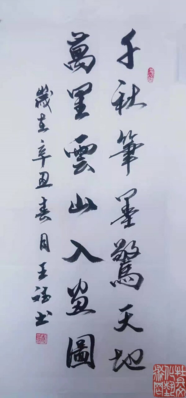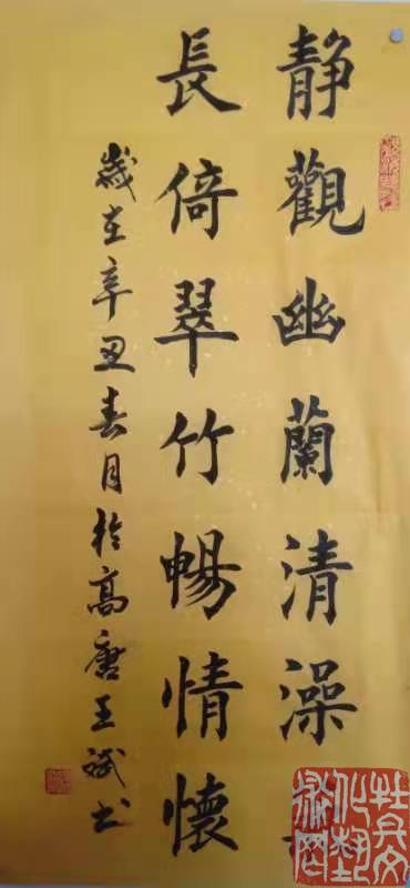 王斌,1967年10月出生,祖籍山东省高唐县——国画大师李苦禅先生故里。10岁起开始临摩古人碑帖学习书法,从唐楷入手,主攻欧体楷书,旁及颜、柳、行(王羲之),书体临习全面。后多次参加省书协组织的研讨班,深得邹方臣、高岩、胡宗江等老师指点,书艺大增。作品书法楷行草、篆刻全面,笔耕不辍,彰显功力。书法秉承传统技艺的基础,主张多元化,又具个性化探索,汲收汉隶之营养,师古不泥,形成行笔沉着,点画苍润,字势跌宕,气韵流畅的艺术特点。书画内涵意趣、重神韵,豪放恣肆,不失灵动,具有较强的人文气息和鲜明的艺术特点,望名家项背。2006年8月,在高唐开办了益友书法学校,集40余年的书画笔耕创作大成,传播书画技艺,教授世范为人,在校内校外取得了可喜的成绩,益友益师,人才辈出,桃李满园。