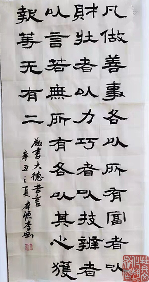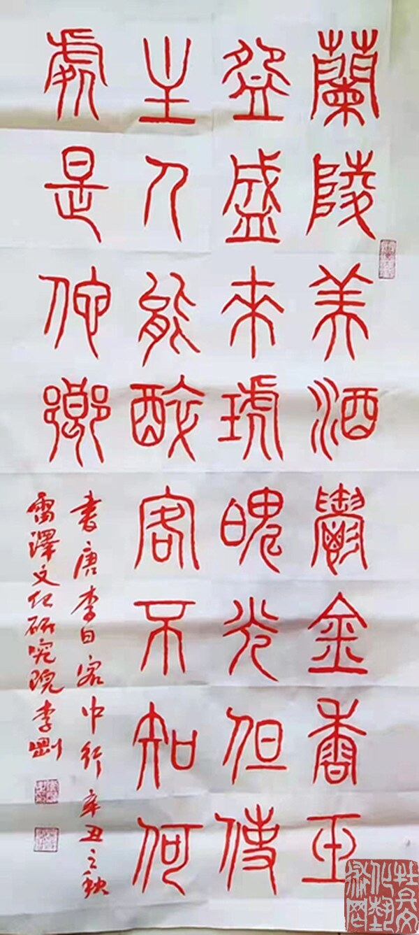 李刚,字本元,号雷泽居士,山东单县人。自幼受儒学启迪,酷爱书法艺术,拜书法家于君葆先生为师,对隶书、小篆致力尤深。几十年临池学习,上至石鼓文、秦小篆及汉隶名碑无不临习,而得其神韵。2014年,在全国农业银行电视书法大奖赛中荣获三等奖。 在工作岗位退休以后,致力于慈善事业。多次参加书画义捐义卖活动,救助贫困家庭和失学儿童。为社会中、小学生培训辅导书法课,分文不取,为的是回馈社会。2015年被市慈善总会评为先进个人。现为民办菏泽市雷泽书画院院长。