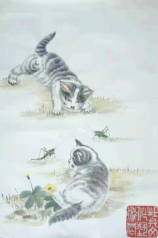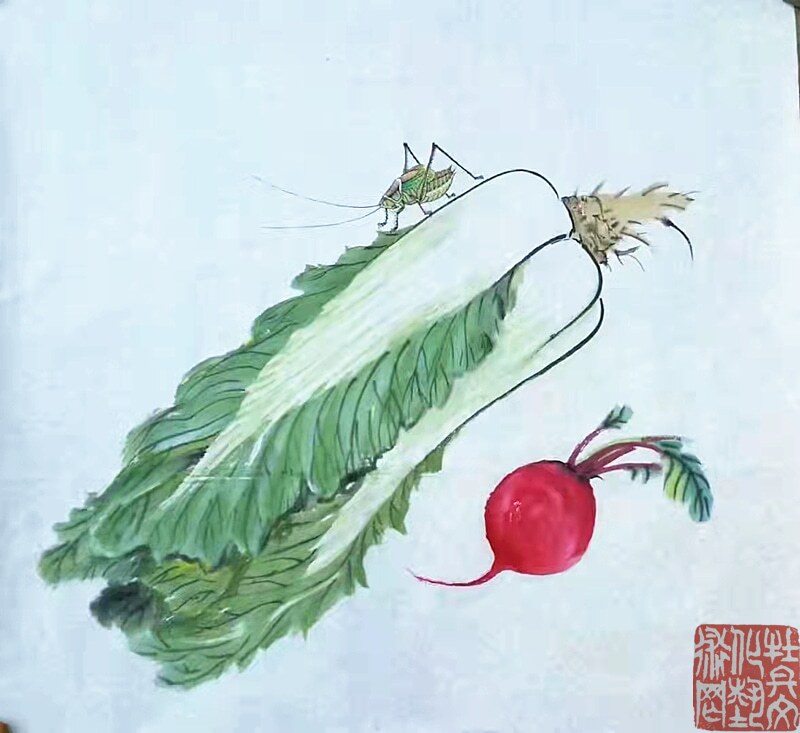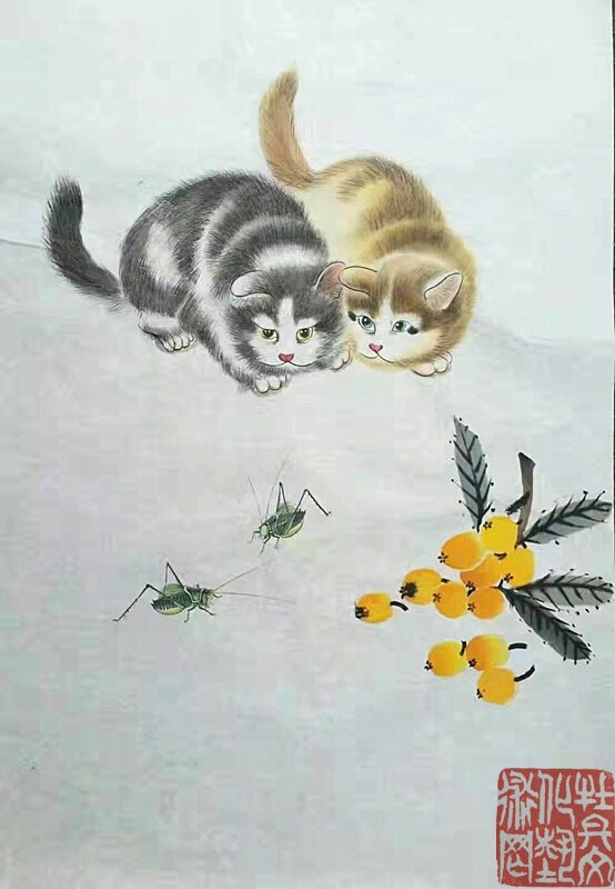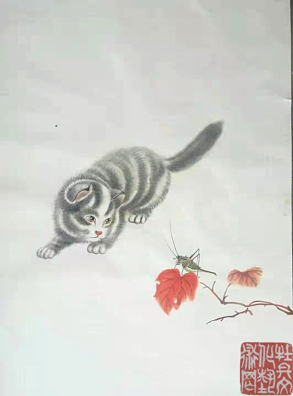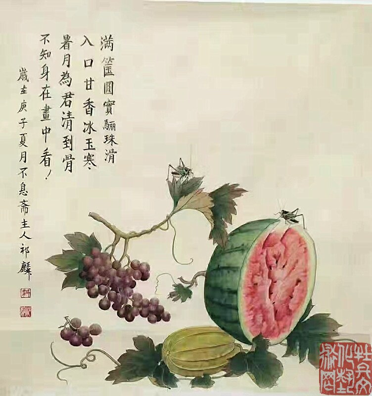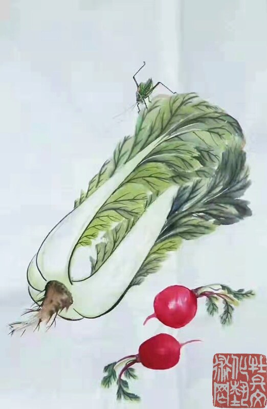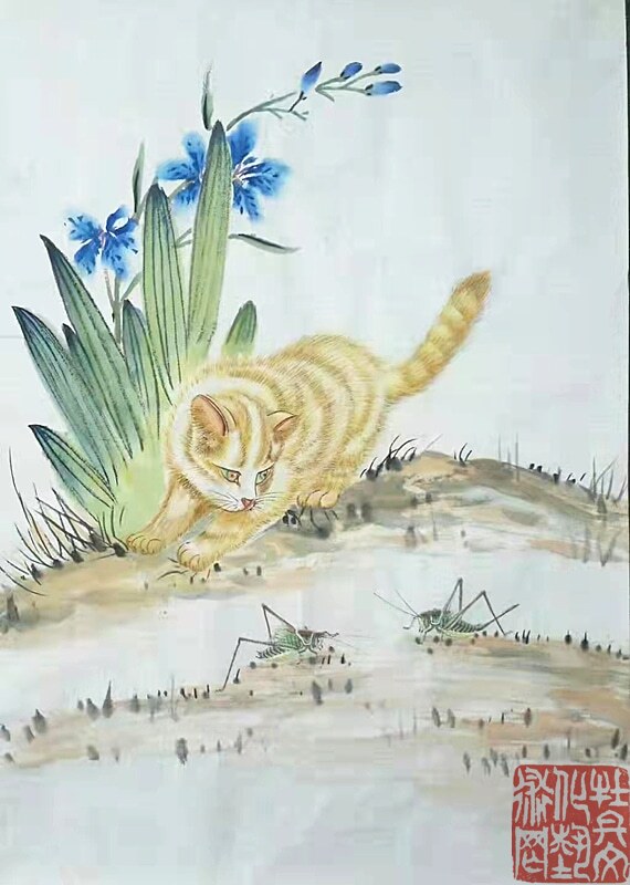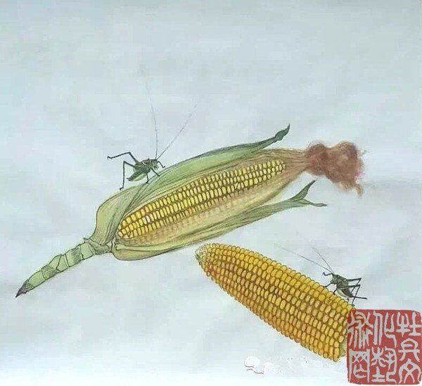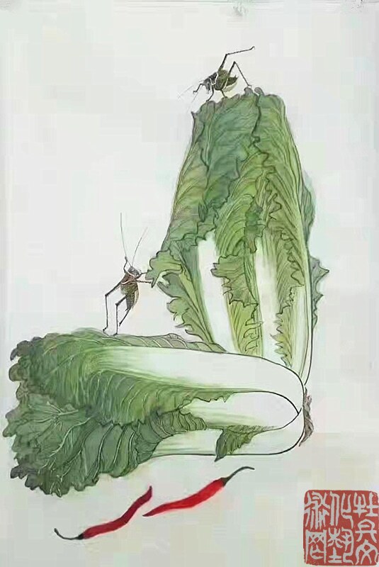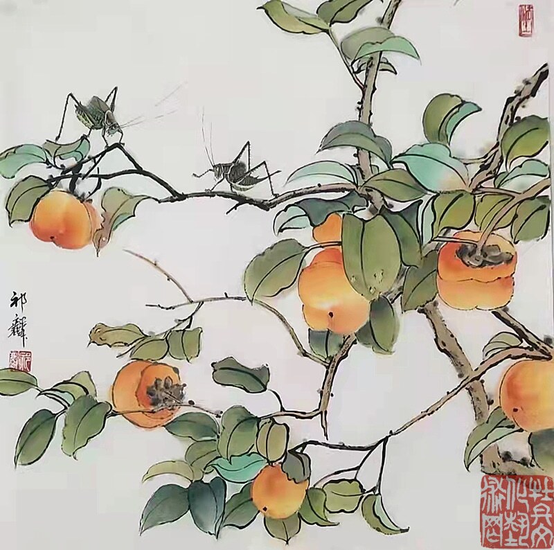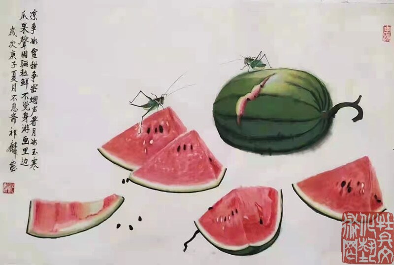 先生生于乡间,自幼喜爱田园,亲近自然:秋蝉高歌、蝴蝶曼舞、蝈蝈雄健、蜻蜓从容,他借虫抒怀,为我们描绘出了一个生机勃勃的美好世界。先生的花鸟画,既是对一个少年情真意切无暇时代的记忆和追怀,也是对这个生机盎然的世界发自内心的赞美,面对画面我们仿佛听见虫鸣,闻到花香,在陶醉之余,不由地感叹:从来丹青有圣手,蝈蝈还看祁麟!