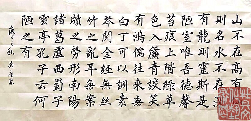 吴庆聚,汉族,党员,祖籍曹县。潜心专注临习书法多年,以欧体为主,还临习了古今其他书法大家,擅长楷书和行书。 作品曾多次在国家.省.市级书法展中入展.获奖。现为书画家协会会员,菏泽市书法家协会会员,菏泽市书法艺术研究会理事。