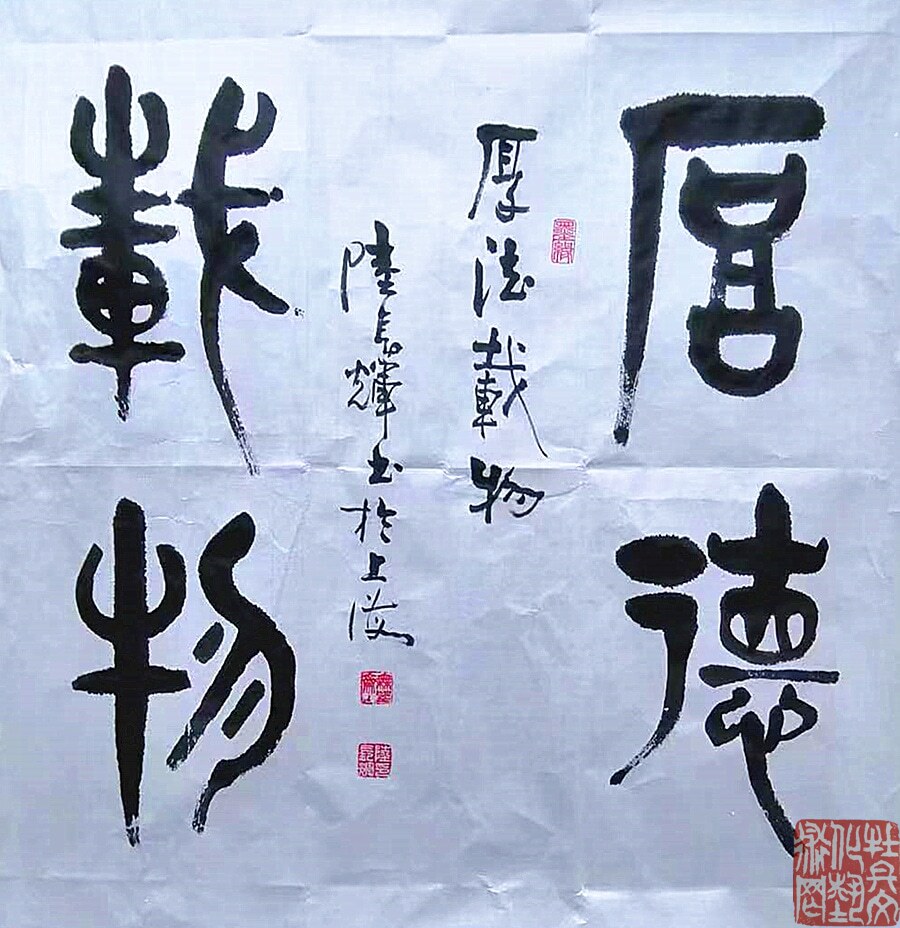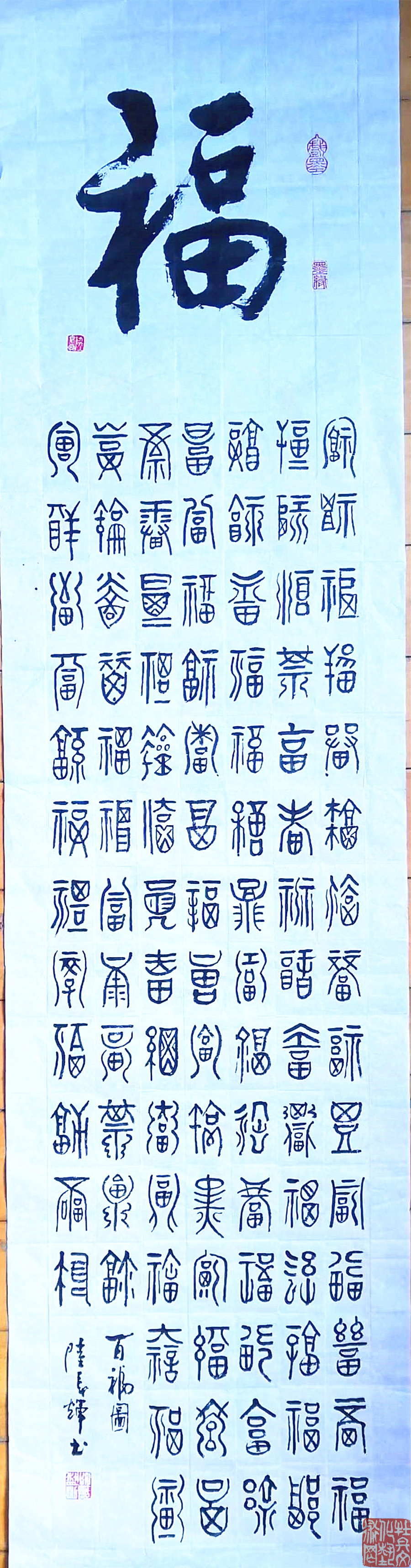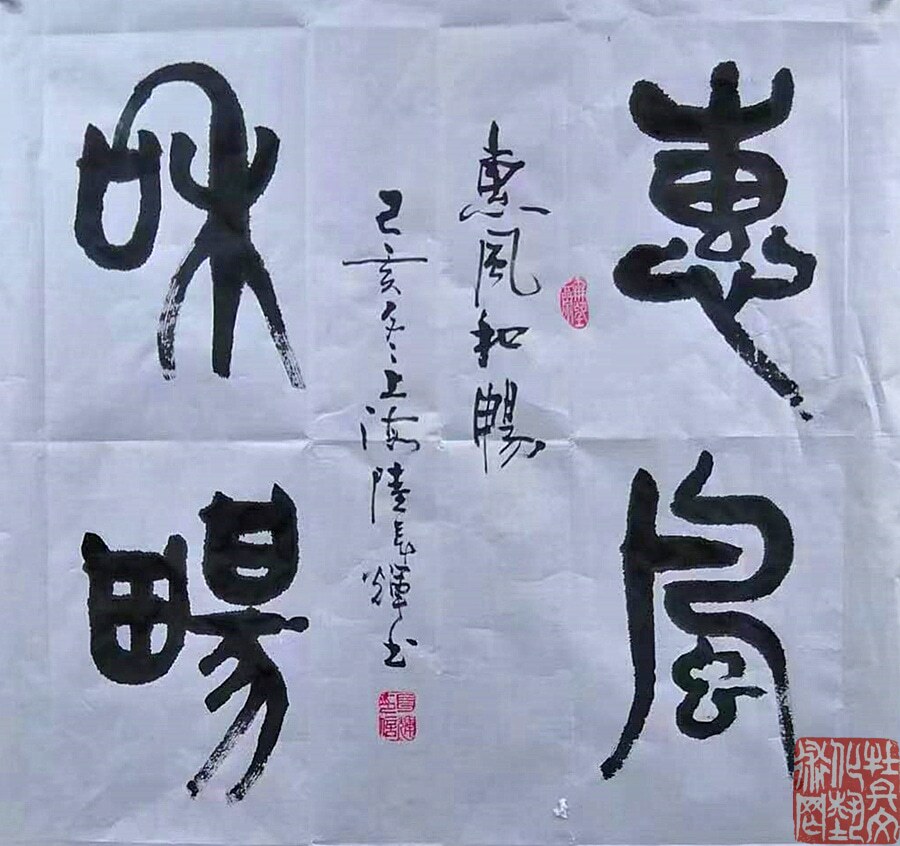 六十岁之后 则以软笔为主了。当时他在北京参加的"作家世纪论坛"更名为"世界 华人作家艺术家协会",于是他除了作家以外,又选择了他本来就喜欢的书法了。两支笔之间重点开始转移。对后者兴趣倍增,成果不断。早在2006年之秋,他就在当地联合几个书法爱好者,成立了在文化广播站下属的书法兴趣小组。毎周活动一次,春去冬来,坚持不懈。这就是现在小有名气的"青浦区翰墨崧泽书画 院"的前身。后来又创设"陆长辉书法研究工作室",在成人书法教学丶书法实用理论和历代玉器书法(玉简书法和古玉书法)方面进行探索丶实践及大量资料的收集和整理。自己个人对书法艺术的追求体现在两个方面:一方面自己拨墨挥毫不断,为教学需要,打下扎实基础;另一方面从严要求自己,办好-组展览。2008年,他在上海四大名园之一的曲水园,首次举办他个人的书法作品展览,展出各种书体都有的作品六十余幅。八年后的2016年,又四年后的2020年,又二年后的今年(2022年),分别举办了《陆长辉篆书作品展》丶《陆长辉隶书作品展》和《陆长辉行书作品展》,编辑出版了四本书法作品集,为他的书法生涯作了一个小结。期间,他的书法作品频频在国内外的大型书法比赛和展览,不少作品流传海内外。