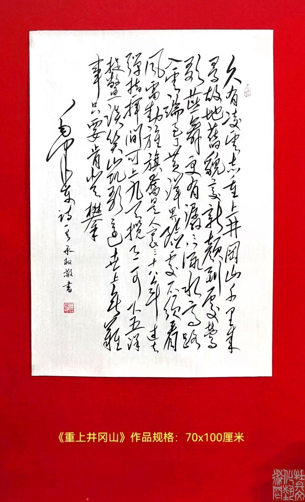 汪承权,侗族,1972年出生,湖南省怀化市新晃县人。世界华人毛体书法家协会湖南分会副,国家高级书法师,红旗飘飘丰碑颂书画院北京平谷分院理事兼会员,河南省林州市国兴文化艺术传播中心名誉院长,韶山网驻站会员,贵州省玉屏县老年书画协会会员。自幼酷爱书画艺术,擅长长毛体.行书.隶书.硬笔书法以及版画创作,热衷于弘扬红色文化艺术。2013年诞辰120周年活动中,荣获“梦.韶山情”全国毛体书法名家作品展银奖,同年参加由海协会等有关部门联合主办的纪念诞辰120周年活动中作品《七律.长征》荣获全国优秀奖。2016年至2021年分别荣获全国第十六届十七十八十九届“庐山杯”与“梦想杯”等书画大赛十一次金奖,其中三次获特别金奖。2016年获湖南省毛体研究会主办的《还看今朝》庆祝湖南省毛体书法艺术研究会成立十周年书画活动中荣获特别创作贡献奖等,并多次在全国书画大赛中荣获大奖。