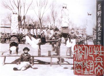 清末、民国初年,受孔楼村影响,大义一带方圆十几里范围几乎人人都会几手。当时杂技多和武术结合习练,节目已有马叉、飞刀、流星、舞狮、马术、滚杯、刀门子、钻火圈等数十种。较有名气的艺人有;孔昭帅(1869年—1967年)、孔宪全、孔宪贵、孔广谨、孔昭真、孔宪海、孔庆洋、孔凡明、孔广仁、孔宪重、李方启等。