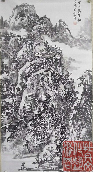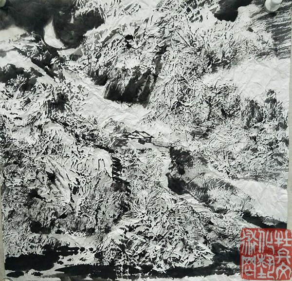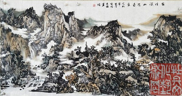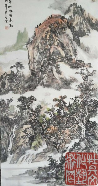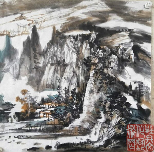 建平先生的山水作品,是体验自然山水时对诗情画意高层境界的理喻,胸中自有丘壑,灵感袭来,澎湃。他的水墨,构筑图式在水与墨、焦墨、宿墨、埃墨之中,以黑白变化为主的语言蕴含了绘画的骨架与根基--水墨特征及形态。纵观先生的作品,蕴涵了绘画的崇高境界:冲淡、雅容、深邃的气息。《石棚松雪图》、《神奇医巫阁山》、《家山远眺》、《辽西山水写生》等作品,都传递着极为鲜活的生命气息和文化气息,巧妙地运用了疏密对比、虚实相生之法,使画面郎润华滋,雍容富贵。'饮之太和,独鹤与飞'这些作品是艺术家精神取向的硕果,精、气、神无一不佳 ,散发着浓郁的文化气息。