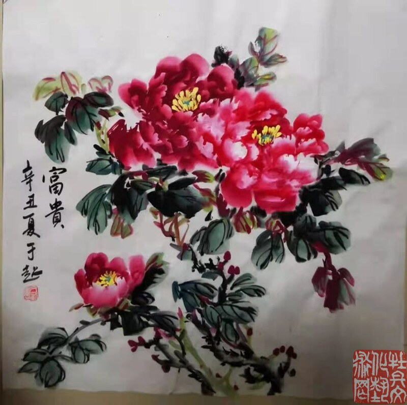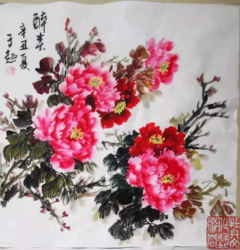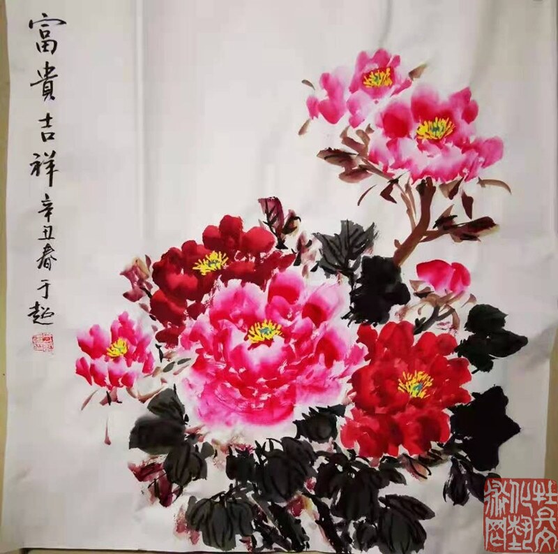 于超,1992年菏泽学院美术系毕业,当代艺术家协会会员,牡丹美术研究院理事,2018年春节联欢晚会,于老师在三分钟内现场画出了一副四尺写意牡丹,显示出高超的艺术功底。美术作品在各级书画比赛中屡获大奖, 曾获“国花杯”书画大赛二等奖;第二届孙膑文化艺术展金奖;首届“牡丹杯”美术作品优秀奖,第二届“金钥匙”杯孝德书画大赛优秀奖。作品被美国、新加坡、韩国等众多机构收藏,享有 “润雅牡丹妙手”的美誉。