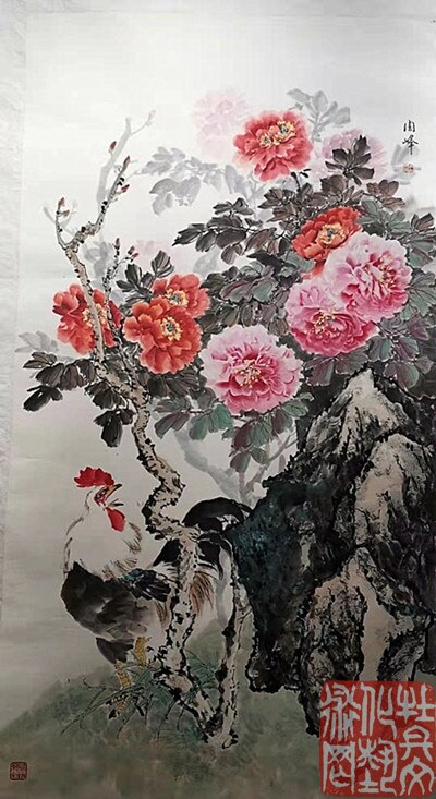 周峰,字一鹤,号冶墨堂主。山东临沂人,毕业于山东师范大学,现居菏泽。自幼喜爱艺术,受名家王小古艺术影响,学习绘画,临习不辍。大学时受张鹤云、张彦青、张锡桀等老师指导专攻花鸟画。居菏泽后,经吴慎远、王培建、李同安等老师指点画菏泽牡丹,作品富有生活气息,色彩别致,时代气息浓厚。近年来,又涉猎其它花鸟题材,尤善牡丹、公鸡、紫藤等题材,设色清新明丽,构图别致,受到群众喜爱。现为牡丹区青年美术家协会理事,爱新觉罗?溥杰书画艺术研究院菏泽分院副秘书长。2013年作品《富贵大吉》入选纪念黄敬革命先驱书画展并获奖,2014年《国色天香》作品入选纪念诞辰120周年书画展并获奖,同年作品《雄鸡歌富贵》入选牡丹之都“国音乳胶杯”全国书画邀请展。
