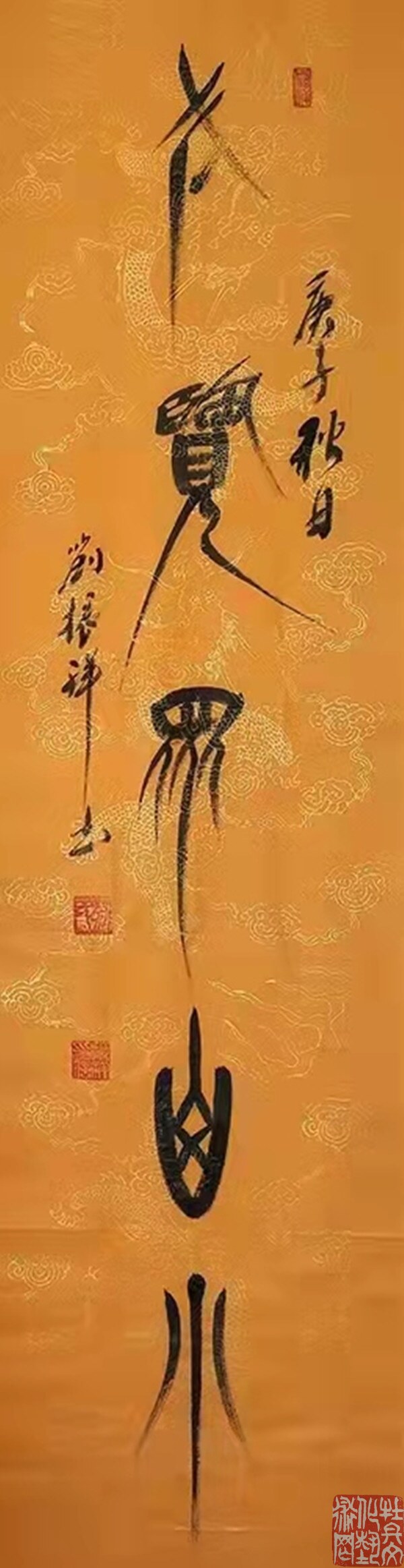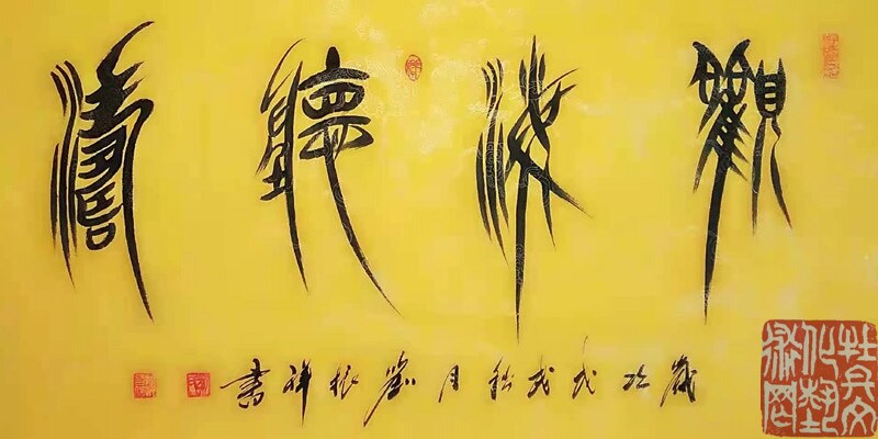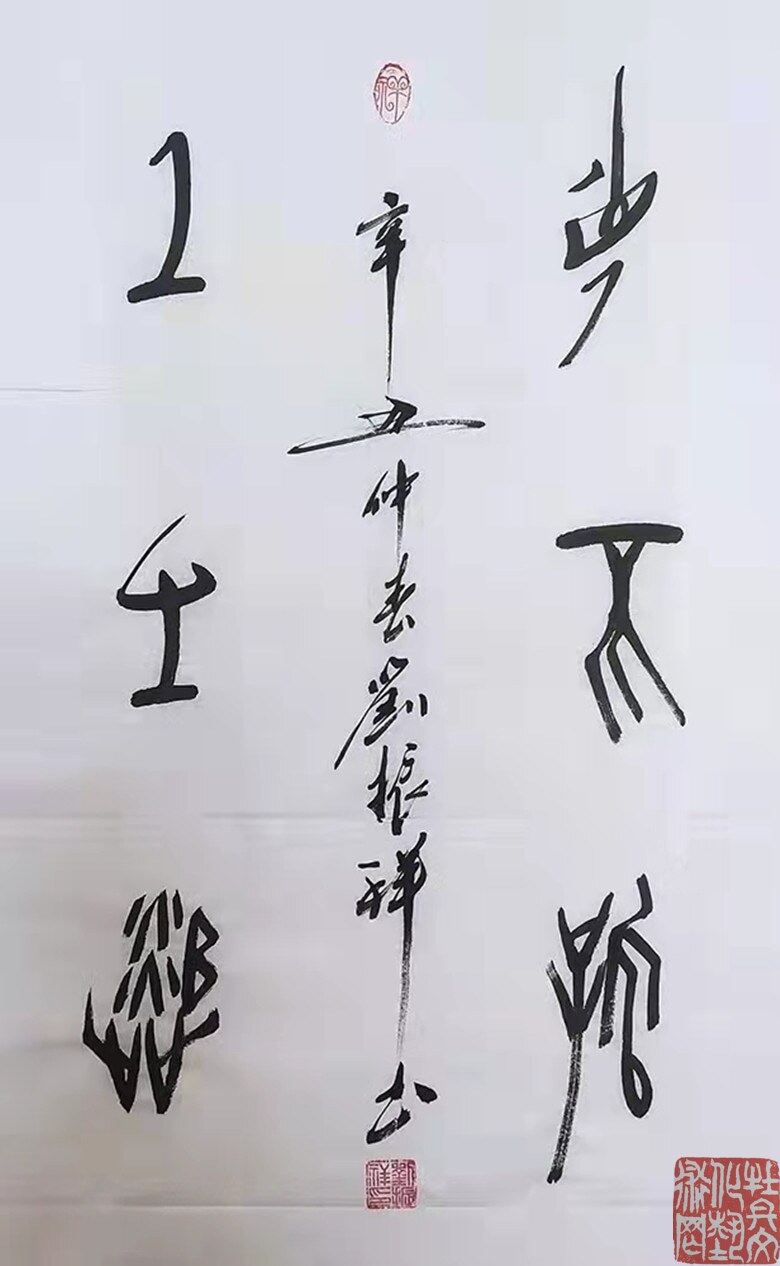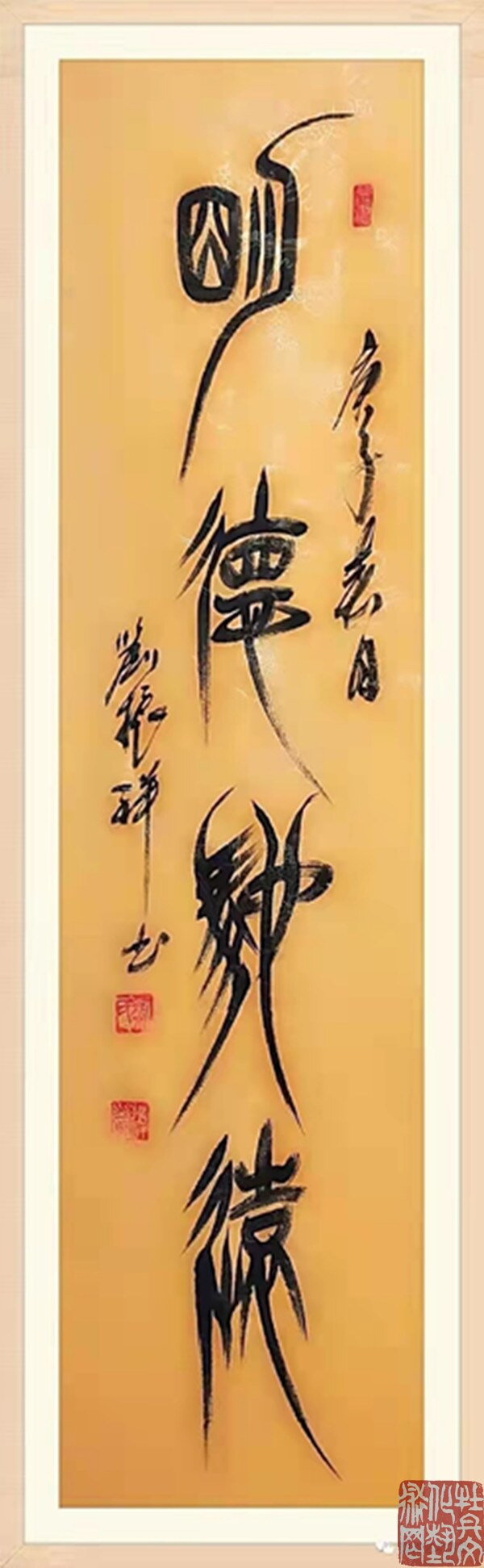 刘振祥几十年如一日研修书法,既遵循传统古法,又锐意创新不拘。尤爱篆书、隶书和甲骨文。