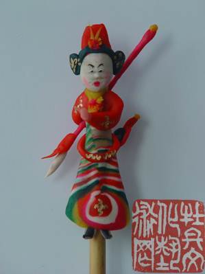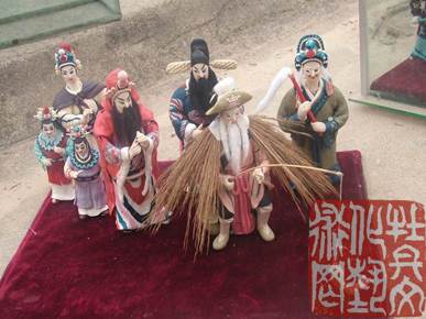 曹县江米人江米人,面塑的一种,用小麦粉、糯米粉混合揉成面团,在面团中掺入各色颜料将面团揉匀,捏制而成的一种色彩绚丽、艺术造型多样的艺术品,主要用作祭祀、观赏、娱乐之用。在曹县,捏制江米人的习俗主要流行于桃源镇、安蔡楼镇、青岗集乡等地区。据当地老人讲,远古时期,地处黄河流域的鲁西南灾祸连年,人们为了祈求风调雨顺,便举行祭天敬祖仪式,同时杀猪、牛、羊等牲畜作为供品。后来,人们祭天敬祖不再用猪牛等牲畜,而改用面捏制、蒸制而成的猪牛等形象,后来供品中又增加了瓜果、蔬菜等各种样式的蒸馍。为求逼真的效果,还在供品表面涂各种颜色。后来,艺人们直接在和好的面团里揉入颜料,制成各种彩色面团,然后进行捏塑,捏制的形象也由早的猪牛羊等动物扩展到神话人物、历史人物、传说故事、祥禽瑞兽等各种题材。