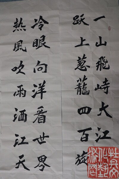 杨金刚,笔名草孟,1964年出生,山东菏泽人。自幼喜爱书法,寒暑练帖,临池不辍,主攻魏碑和行草,逐步形成了自己的书法风格。师从菏泽书法界“五老”王宗普先生,菏泽市书法家协会会员。热心公益事业,多次参加省市区组织的书画展览活动并多次获奖。2018年曾接受中央电视台农民频道专题书法采访。