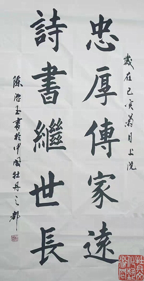 陈治玉,一九五五年三月出生,菏泽市人,大专文化程度,牡丹区疾控中心退休干部。自幼喜爱书法,以碑帖为师,几十年临池不辍,真、草、隶、篆、行各体皆工,尤善草楷。作品曾多次参加省、市、区展出并获奖,深受广大书法爱好者好评。