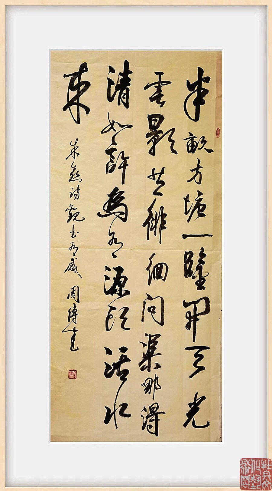 周传建,山东泰安人,1954年生,从事中学语文教学四十余年,2014年退休。现任泰安市山书画院院长、党支部书记,国艺书画院副院长,楹联学会书画艺术院《书画艺术报》副主任,泰山华侨书画院名誉院长,泰安市红色文化博物馆顾问,岱岳区文史研究会副院长,泰安广播电视台专刊部书画新闻中心主任。作品多次获国家级奖项,2001年在人民大会堂参加全国创优争先先进个人表彰大会,时任全国人大副委员长顾秀莲亲自接见并合影留念。同年10月在人民大会堂参加全国大型公益活动,时任全国人大副委员长周光召、政协副王文元亲自接见并合影留念。作品多次被国内外友人收藏。