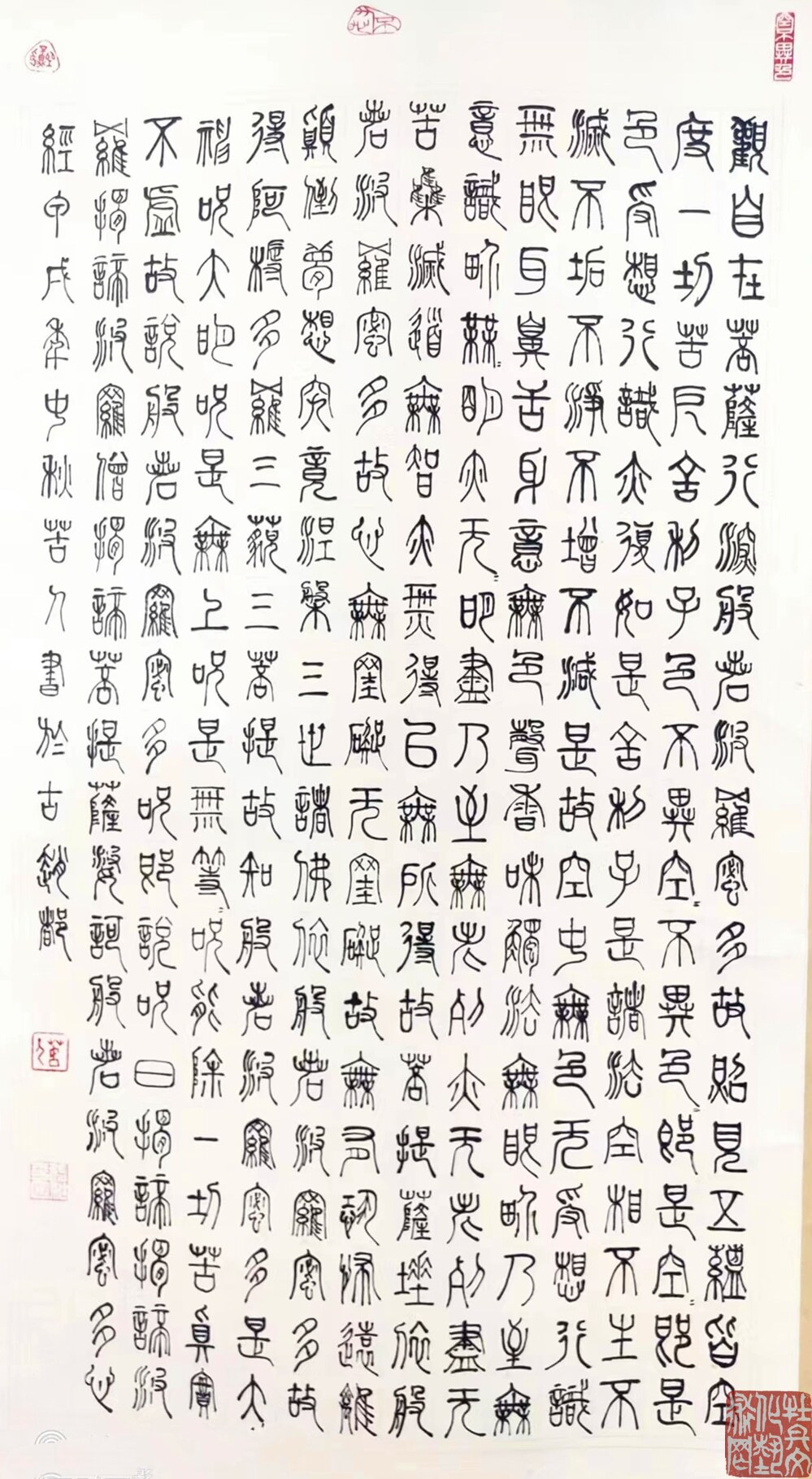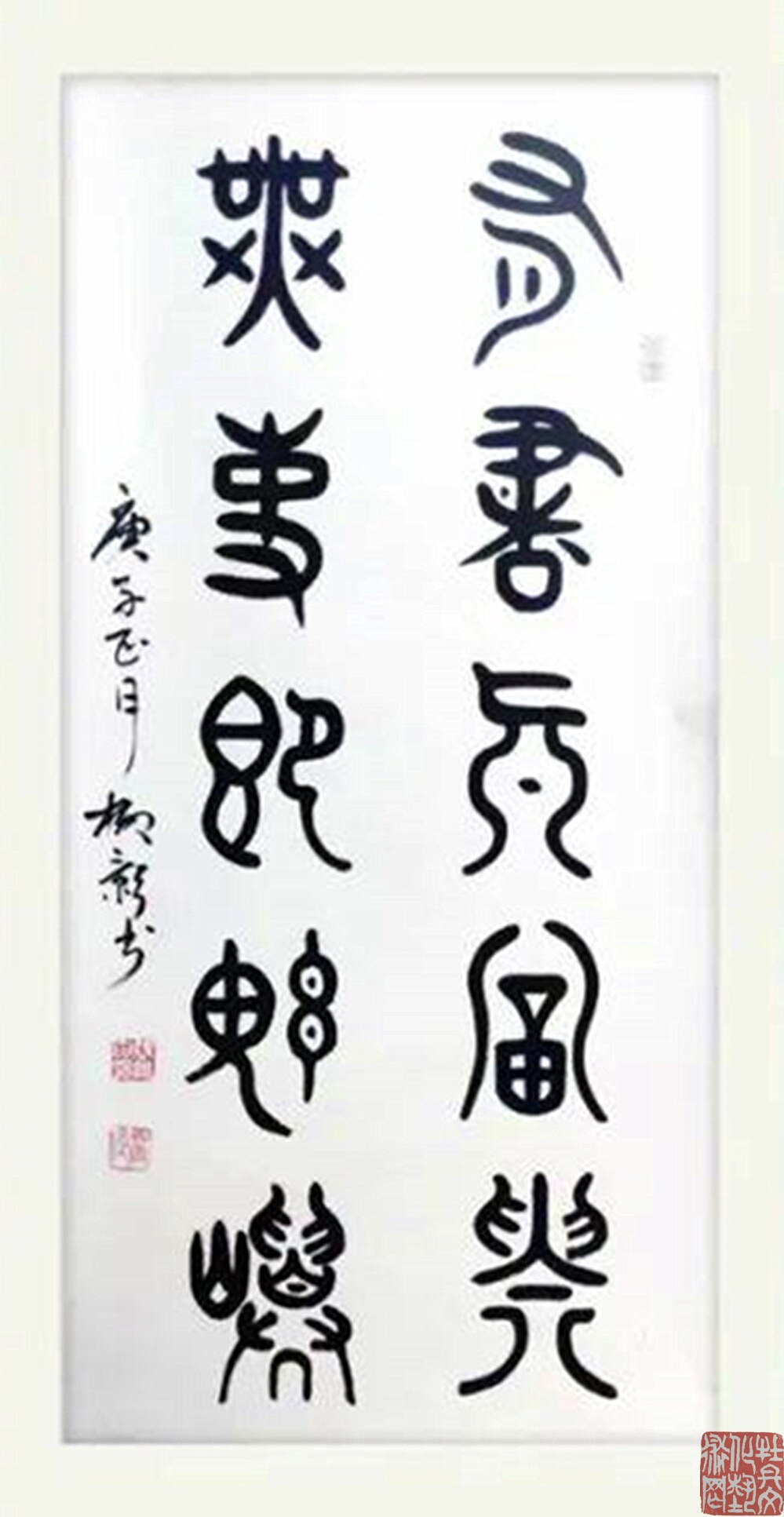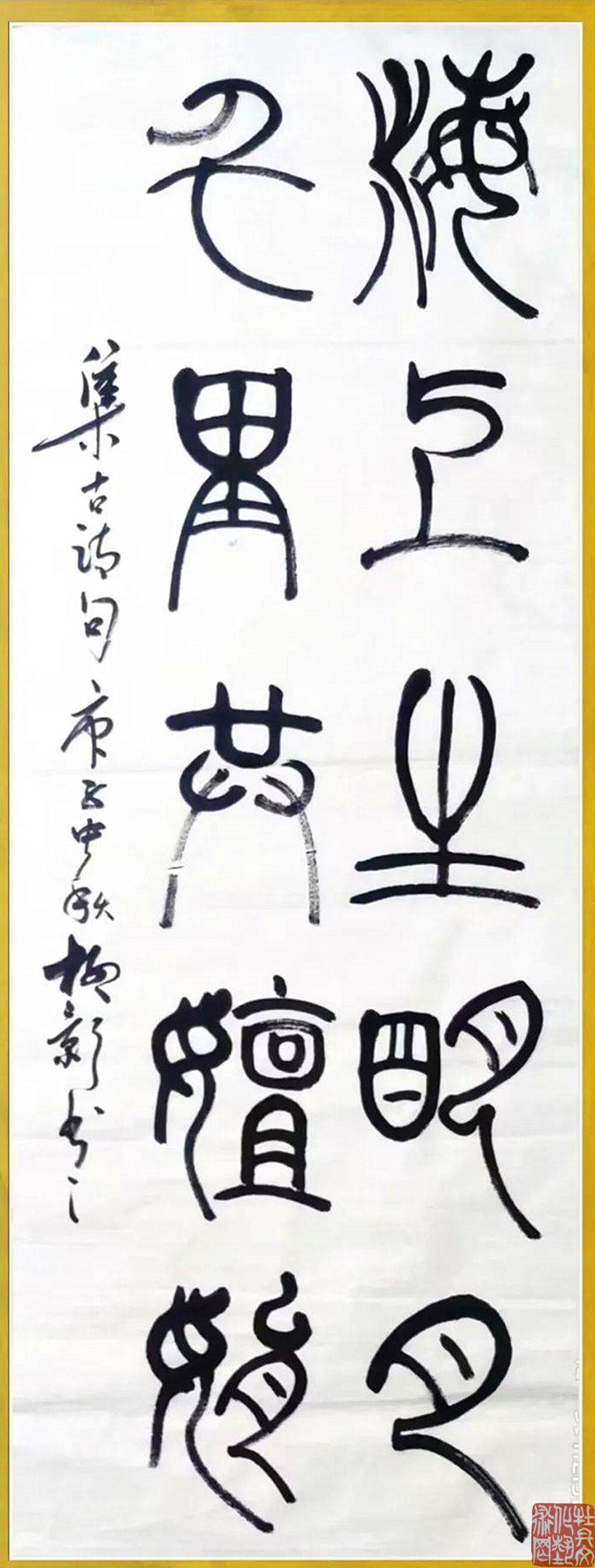 张继田先生写篆书,非常在意笔墨的书写效果。取法譯山碑,碧落碑等,却不仅仅反馈回来碑字的立骨精神,还通过精研勤思表现出笔墨书写的传神魅力!形神兼备,尤其贵于神!字字有跃、腾、奔、卧的人格姿态,让书法完完全全回归到了艺术的界域之内。