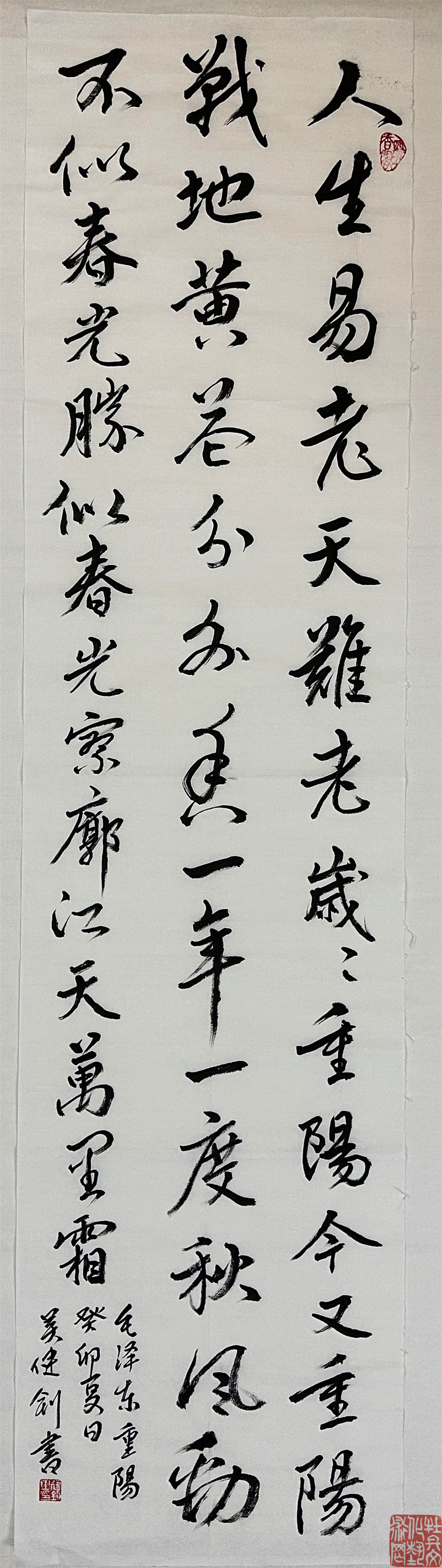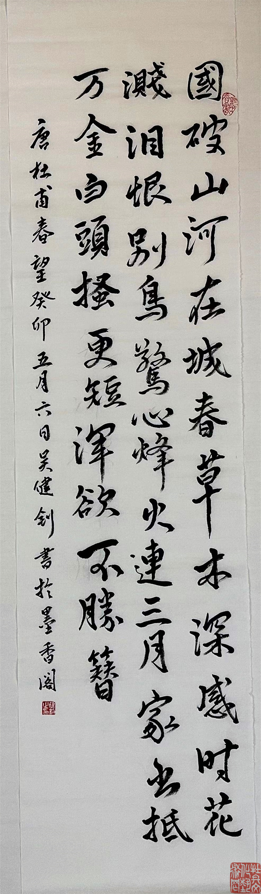 吴健钊 ,1957年4月29日生。毕业于北京师范,从小对传统文化有深厚情结和兴趣,胡乱涂鸦,后得到姑丈高剑父的学生周行和多位前辈名宿悉心指导开始系统学习国画和书法,通过对五代董源巨然、宋范宽、郭熙、李成、元黄公望、王蒙、倪瓒、沈固、文征明、唐寅及清代各大家临摹学习,书画同源,在学画之余兼习书法,经过一段漫长磨砺,在内心深处常把书法当作一种人格修炼,曾学习过颜、欧、褚、隶、行和魏碑,从而不断完善自我书法和国画艺术这片绿地,找到自己的精神家园与归宿,通过长期临习,在笔墨上打下了较为扎实的基础,积累了些经验,通过外师造化,中得心源,结合自己想法,作了一些探索和创作。