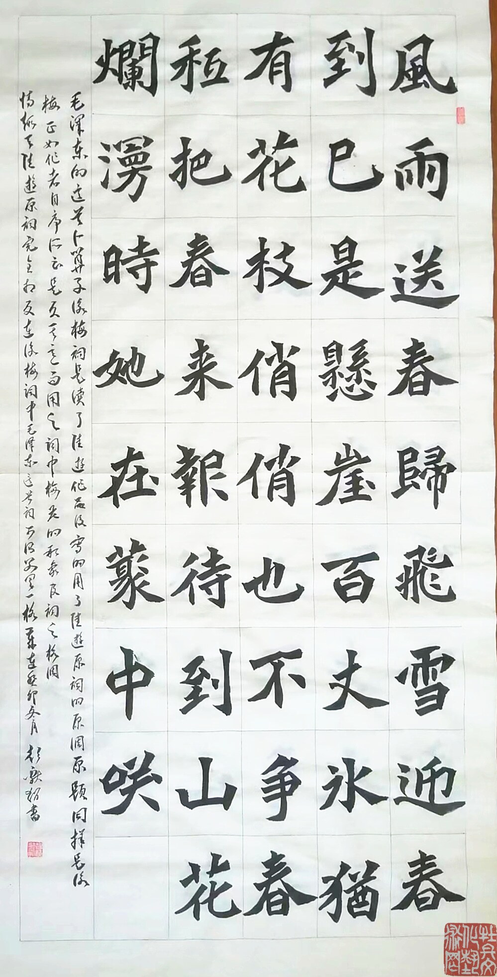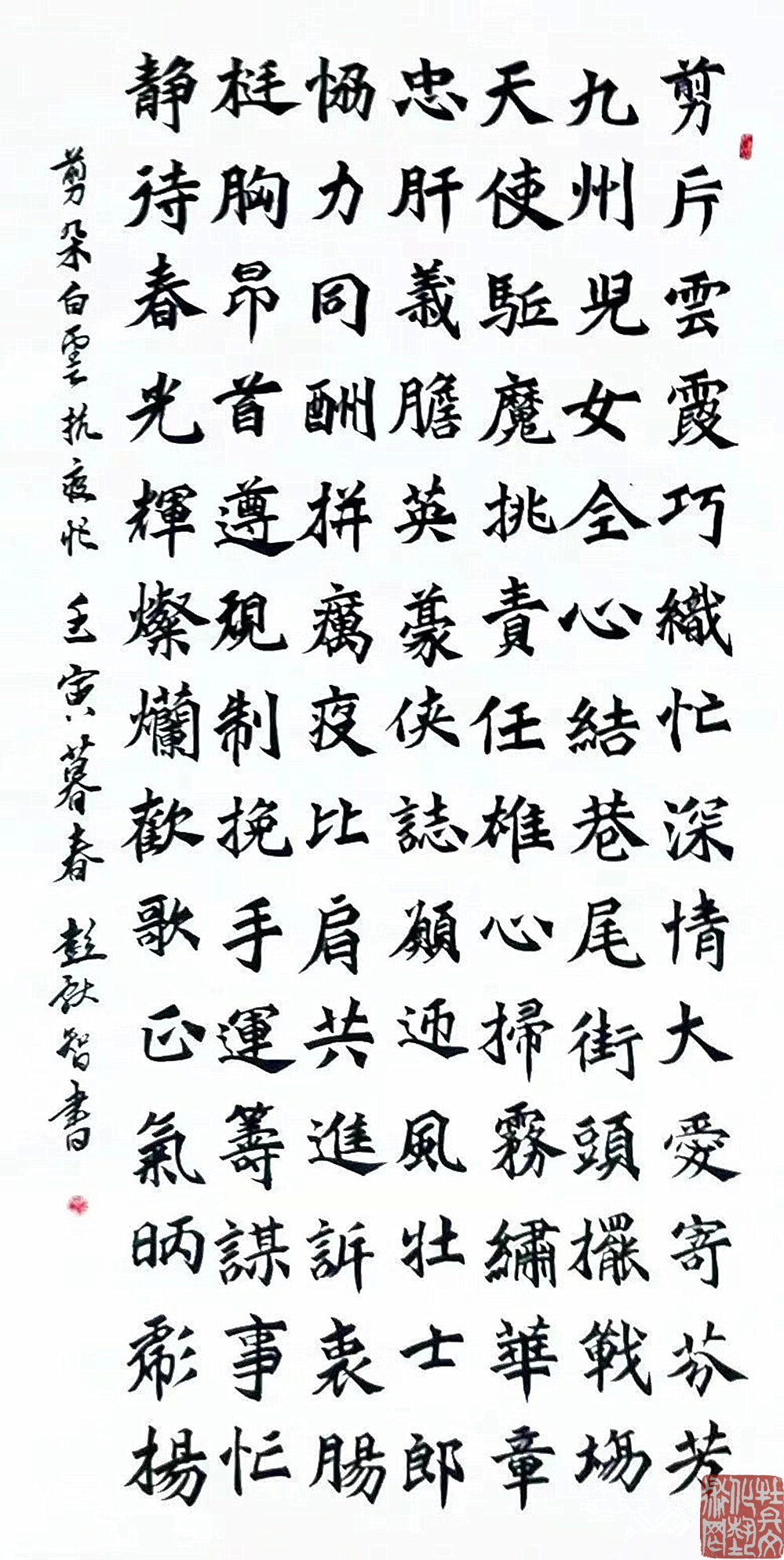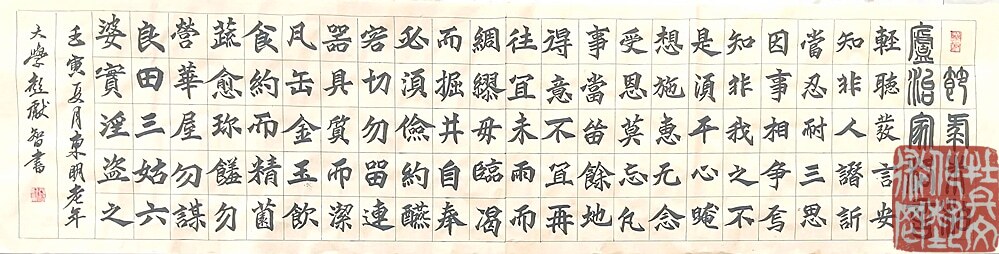 彭献智,党员,1956年出生,山东省东明县人,1978年参加工作,2016年退休,退休后爱上了书法,现为老年书画研究会会员,擅写楷书。作品曾在2022年山东省老年大学孝亲家庭手写好家风征集活动中获一等奖,2023年作品千字文在翰逸神飞老年书画展中入展,作品桃园玩月在花好月圆庆国庆老年教育杂志获优秀奖,并刊登在第十一期。菏泽市老年大学举办的翰墨丹青颂党恩作品展获三等奖,兰台翰墨菏泽市档案书法作品大赛作品被菏泽市档案馆、菏泽市三源寺永久收藏。其它作品多次参加省市县活动并获奖多次。
