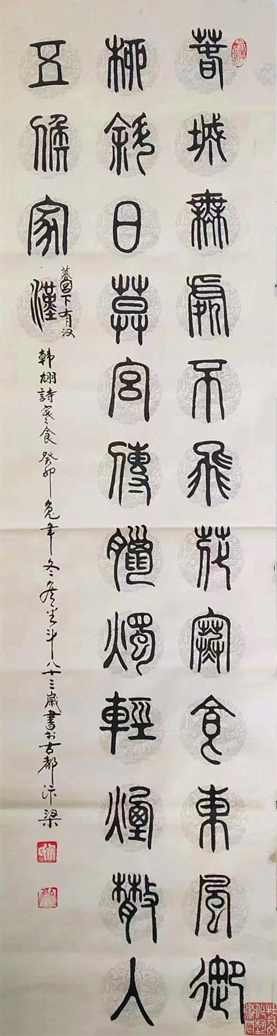 侯金斗 ,83岁,开封市人,知名书法家,河南省书法协会会员,常务副院长,擅长行草隶篆,功底深厚,多次参赛并获奖。