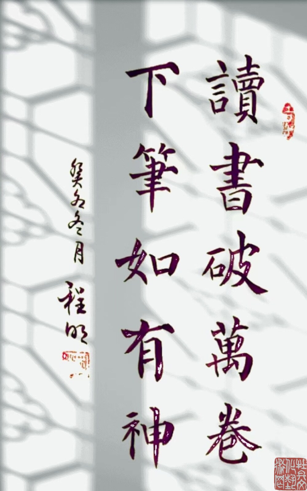 多年来,他正是用行动实践着他的艺术理想和艺术追求。如果没有静谧而高远的心胸,是难以真正致力于书法艺术的。他是一种热爱生命,崇尚自然的平和心态运笔创作的。正如他说的:“为书先为人”。可谓肺腑之言。