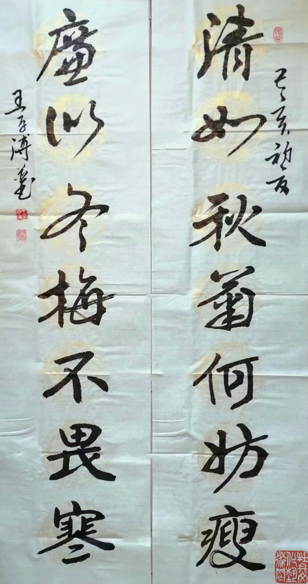 王厚溥,45年生,党员,退休干部,仙桃市人。7岁入私塾与毛笔字结缘。进中书协函大三年,多师广益。作品曾被《人民日报社》《画报》《财政》以及省、地市报刊宣传过。作品入名典三部,辞条收入《人才辞典》卷三,《书画报》先后选登颜楷与魏碑行楷作品。自作诗一诗七体被湖北省档案馆给予收藏费永久收藏,它展获金、银、铜奖十多次,海内外收藏者众。先后办个展三次,70岁出版书法集。 现为:湖北省协会会员、香港诗词学会会员、湖北诗词学会财政分会会员。齐派第三代传人,人称荆楚虾王。