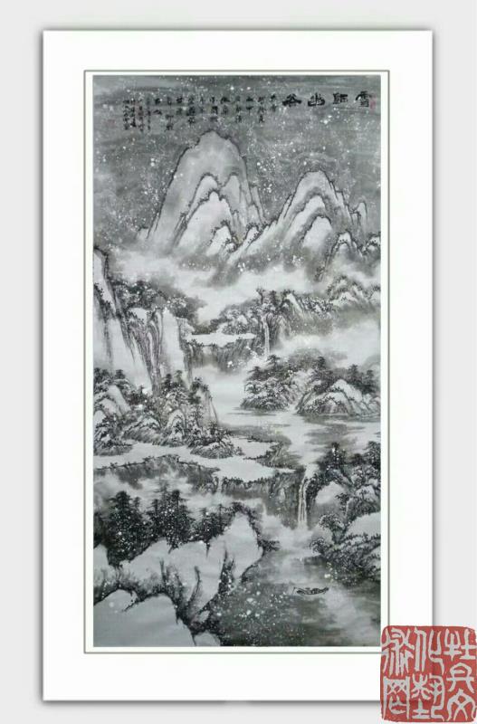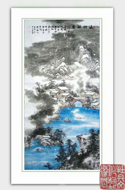 满怀思念半赋禅! 老家下雪了,作得此画而写句。