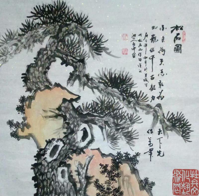 漫舞飘飘戏古松! 今天也是老家飘雪,算是临情写景了!
