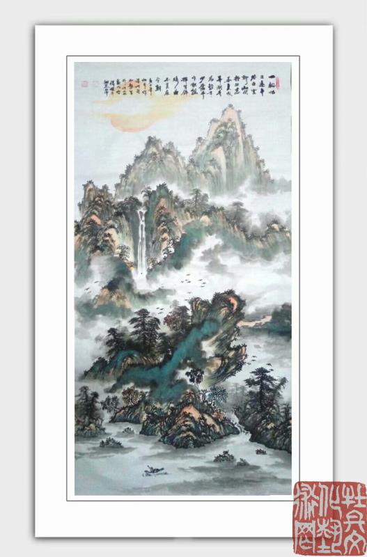 一轮旭日远, 半谷白云飘; 山间抒壮志, 华夏我弄潮;