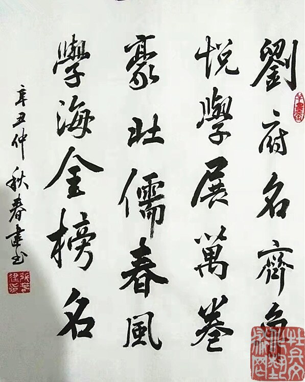 自幼酷爱书法艺术,书法从唐楷入手,以二王为主干,兼容米芾用笔之爽健,细研形质追求神采,后追孙过庭草书“书谱”数十年用功不辍,得到名师高明亮老师的亲传,遍访名师,多次进京进修学习,后入书协培训中心高级研修班学习,亲聆刘文华、张锡康诸导师教诲,书学主张以境界为灵魂,以学识为滋养,手追而心悟,书风广博雄朴,刚柔并济,慷慨豪迈,蕴秀洒脱,作品曾多次参加国内外书法大赛并获奖,部分作品被国内外收藏家收藏,作品被邮政“盛世华夏,典藏”,出版印制十二生肖邮票,被称为“国粹艺术名家”称号!曾受邀教育电视台“水墨丹青”,“泼墨中华情”栏目参加活动,受聘于中央影视剧组专业书法家,参加名家艺术联盟举办活动走进大使馆选定国礼,与上市公司同创达地产等多家企业合作,愿书法道路更上一层楼!