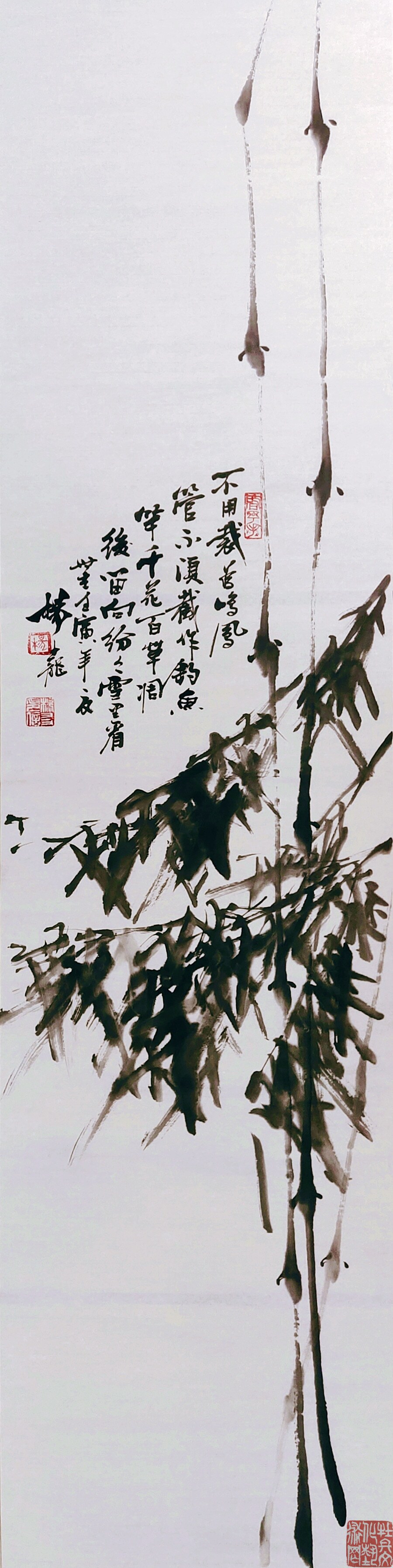 杨少龙,1974生于黑龙江哈尔滨,本名杨友,字少龙,祖籍山东。别署庭森,号无为斋主、聽雪山房主人 。 多年来延习板桥画竹风格,青年时代参加启功先生授课高研班,画竹得到启功先生亲自指导。