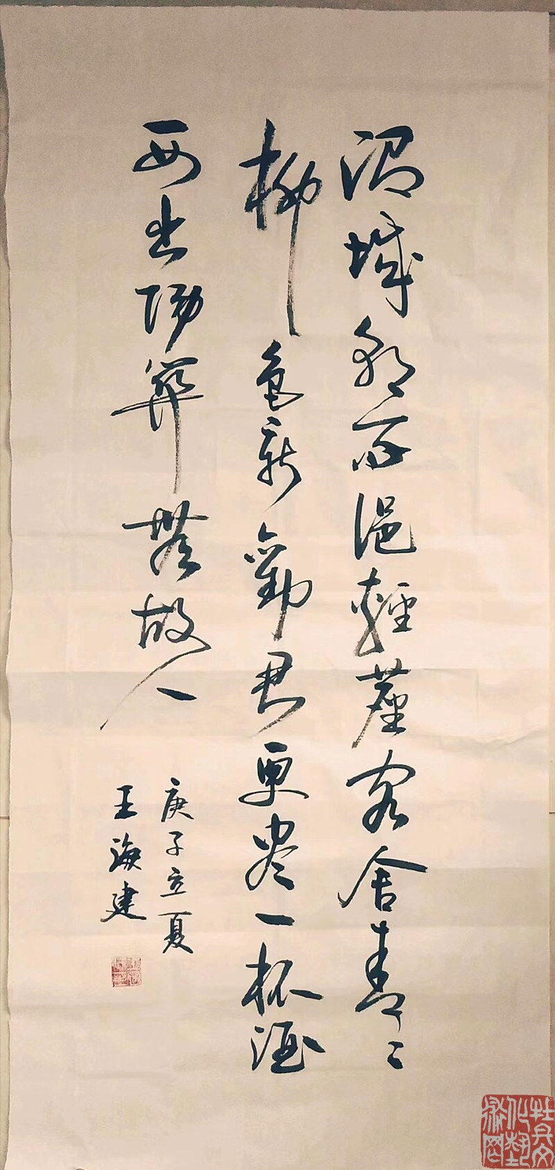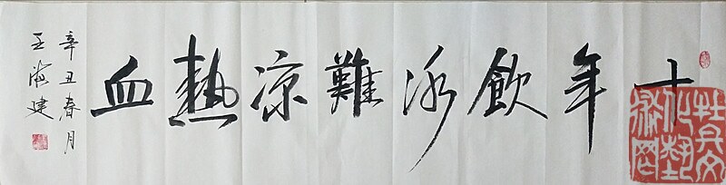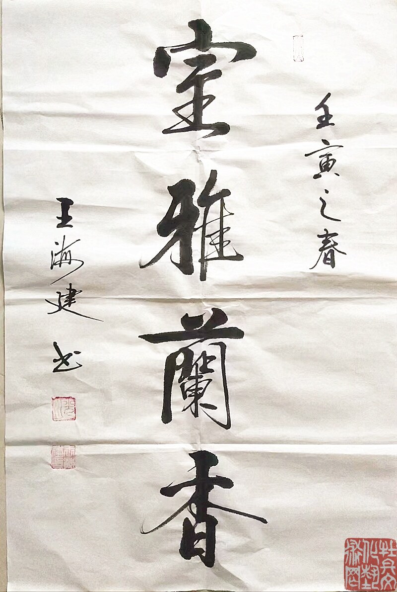 王海建,别名光川,民革党员,1976年生,山东菏泽人。自署墨行天下,斋号逸鹤堂主人。系楹联学会会员,中华诗词学会会员,菏泽市书法家协会会员,菏泽市作家协会会员。 世代耕读,性愚且鲁,自幼痴迷国学,酷爱舞文弄墨,朝研夕摹,临池不辍。亦喜参禅悟道,四方游学,见贤思齐,转益多师。 初仿唐楷魏碑,后学秦篆汉隶;上溯甲骨金文,下涉明清百家。近来专攻行楷,兼习草篆,追二王神韵,承芾铎遗风。 为人敏而好学,不事张扬,创作取法乎上,厚积薄发。其字端庄洒脱,飄逸俊朗,浸淫传统但不失秉性,凸显方家心摹手追之功力;其文崇雅黜浮,朴实厚重,蜚声文坛而自甘寂寞,颇具墨客谦逊豁达之情怀。