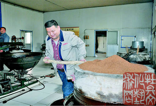 李国顺说,接手小磨坊以后,他把过去半吨重的小磨盘改成大磨盘,电机代替了骡马,其它的制作工艺却一点也没变。“父亲是一个吃苦耐劳的人,经常忙活到半夜,白天还要挑着担子走街串巷吆喝着卖,靠这一营生养活了一家人。他是个实诚人,从不短斤少两,也不会掺假卖次,他制作的小磨香油、芝麻酱卖到附近各个村庄。我不仅继承了他的手艺,也秉承了的经营理念,做一个实诚买卖人!”