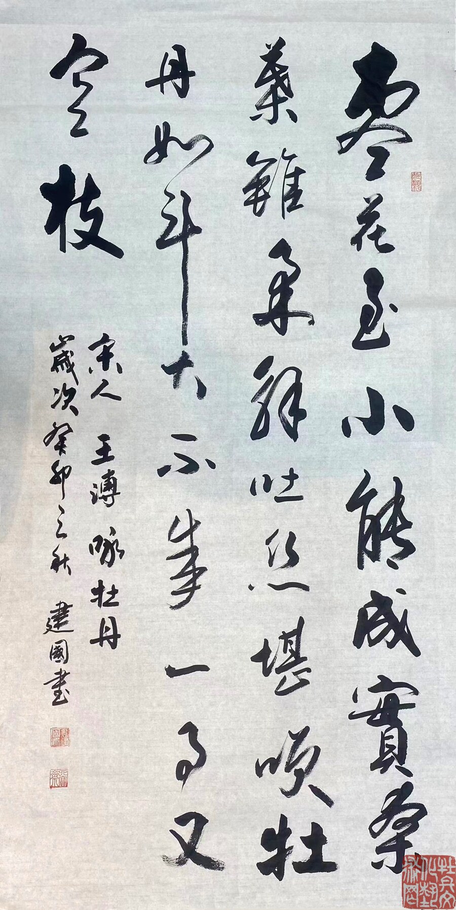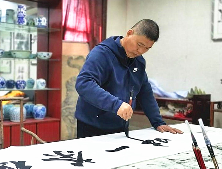 袁建国,四宝斋主人,现任画院院士、山东齐鲁书画研究院院士,菏泽市书法家协会会员,牡丹区书法家协会理事,重华书画院秘书长、墨缘书画院名誉院长等职。