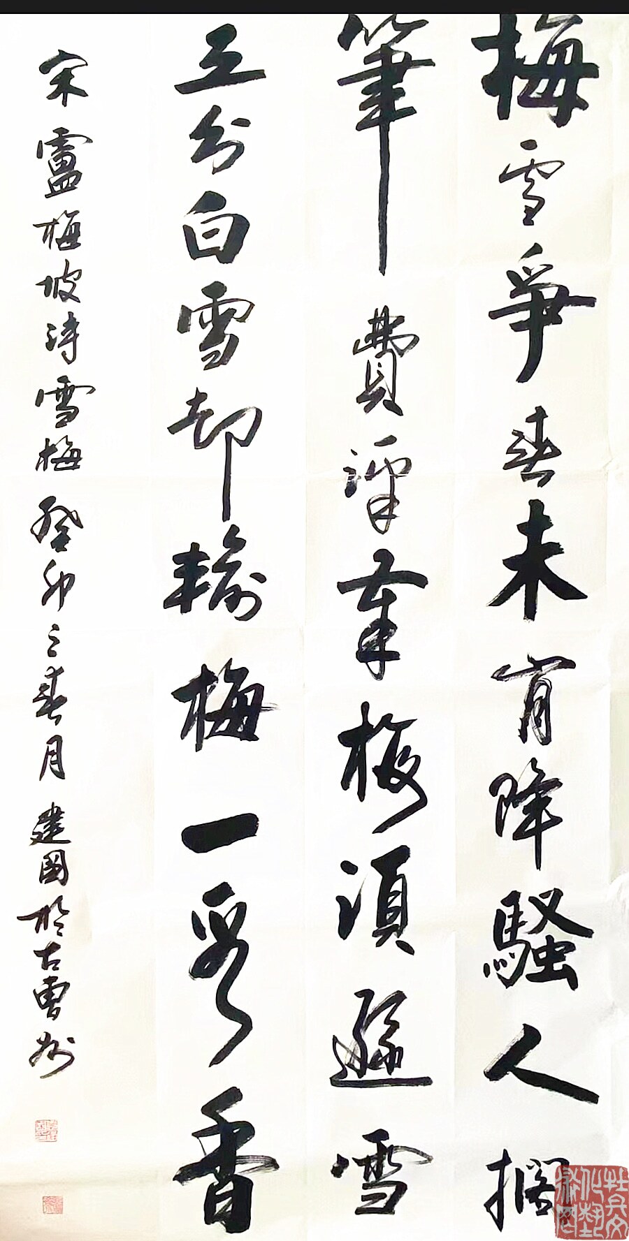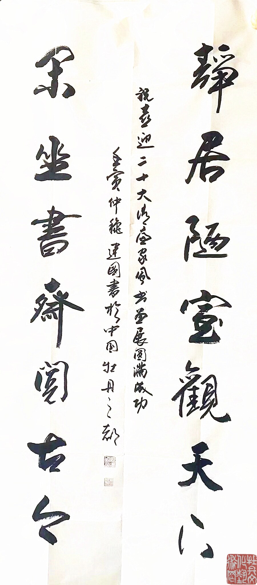 自幼受家庭熏陶研习书法,临池不辍、入古出新、涉猎诸体,尤以楷行为佳。其书法劲健不失飘逸,灵动不失雄浑。多年来,坚持临习颜真卿、王羲之、孙过庭、文徵明、怀素等历代大家名帖,在注重吸收古代大师营养的同时,经常参观和参加国内外书法大展赛又从中学习其精华,书风从不求其索怪,而是放纵于自然而然之妙处,规规矩矩写字,本本份份做人,逐渐形成了“朴厚自然、古拙苍劲 、雄强大气”的个性书风,笔法、结构,无不彰显刚柔相济、意志坚定、积极向上的力量感,有一股壮气、豪气和阳刚之气,具有强烈的视觉冲击和朴实纯美的艺术感染力,作品广受好评,具有很高的艺术价值及收藏价值。