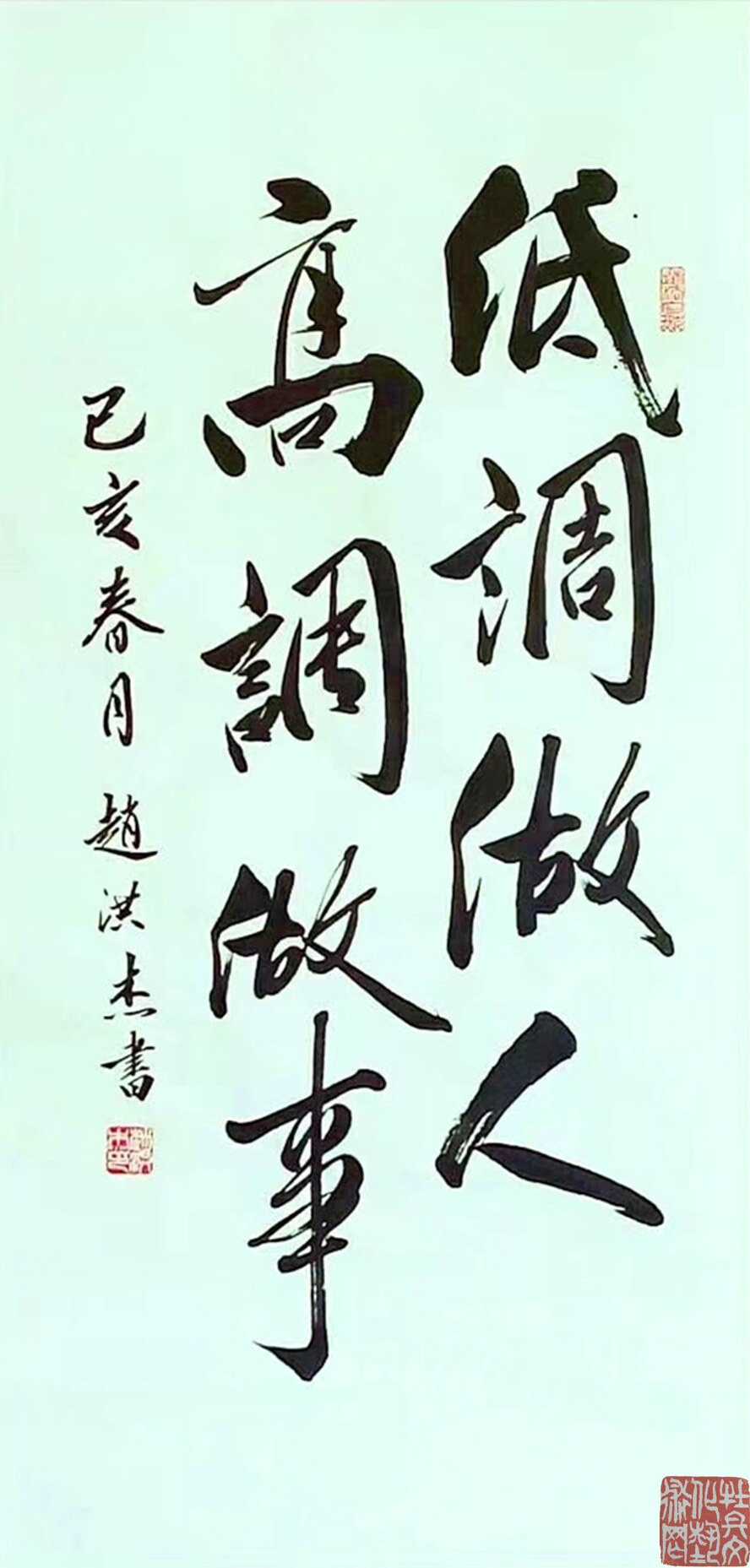赵洪杰,1971年出生于山东曹县。现为硬笔书法协会会员,菏泽市书法家协会会员,东坡书画家艺术研究院院士。自幼热爱书法,少年时代曾获县书法大赛一等奖。从戎期间,任文宣工作,书法得到军区首长的高度赞誉。1992年硬笔书法作品入选《全国硬笔书法艺术品展览》。1995年书法作品获《山东省首届十大杰出青年书画家大赛》书法家佳作奖。1997年受到韩国书画家朴鲁国先生高度赞誉“前途有为,斯界泰斗之不疑。”1999年获《庆祝建国五十周年暨澳门回归全国书法大赛》三等奖,又获“爱我中华,弘扬国粹”大展二等奖,2012年《第三届“羲之杯”全国诗书画家邀请赛》二等奖,同年获《首届三苏杯书画大赛》一等奖。2013年获《第四届“羲之杯”全国诗书画家邀请赛》一奖等。2014年书法作品被评为特等奖并入编《当代作家书画家代表作文库》,本人传略被编入《当代作家书画家大辞典》。