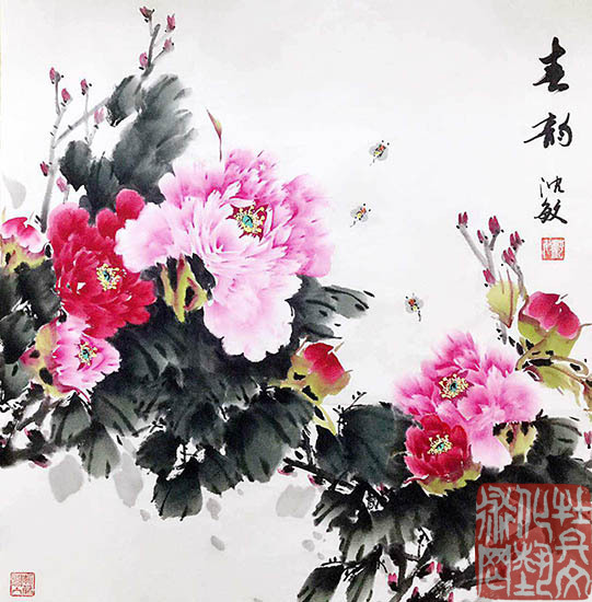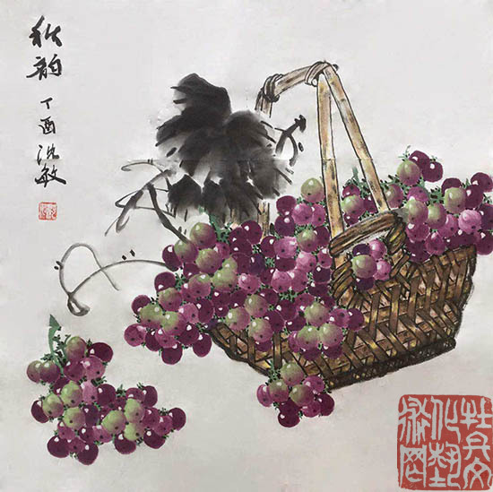 沈敏,1957年出生于革命家庭,在家庭良好思想的教育下,酷爱艺术。天生活泼、灵气,对周边事物充满好奇,富有勇敢性格和探索精神。在工作之余,爱上了画画,尤其是写意花鸟画,如饥似渴地临摹、研究古今大师的名作,特别是现代大师苏葆祯的葡萄、王雪涛的牡丹等,在多年绘画艺术实践和探索中,逐步形成了自己的绘画风格。笔下的牡丹极富花朵之特性、枝叶线条流畅,浓墨重彩,形神兼备,生趣盎然。其笔下葡萄晶莹剔透,娇气欲滴、艳而不俗、水灵活现。藤蔓苍劲流畅,着墨赋彩不同凡俗。沈敏画作,意境清幽,古朴淡雅,笔法老到,线条挺拔,富于弹性,层次分明,质感自然。现为老年书画研究会创作研究员,宿迁美术家协会会员、宿迁市中老年书画家协会副、《书法报社》签约画家、沭阳老年书画研究会会长、理事长。作品多次在全国性比赛中获奖:《硕果迎宾》获老年书画研究会大赛金奖,《紫玉明珠》获老年书画研究会等单位举办的第五届‘帝渡’杯大赛现场创评金奖,入选“帝渡杯”第五届重阳书画展并获“重阳书画奖”,《秋韵》获第三届“炎黄杯”国际书画印艺术大赛金奖,《金秋》获第二届全国书画名家邀请赛金奖,《硕果迎宾》被“书画导报”收入《书画名家代表作品》(2011年年鉴)。